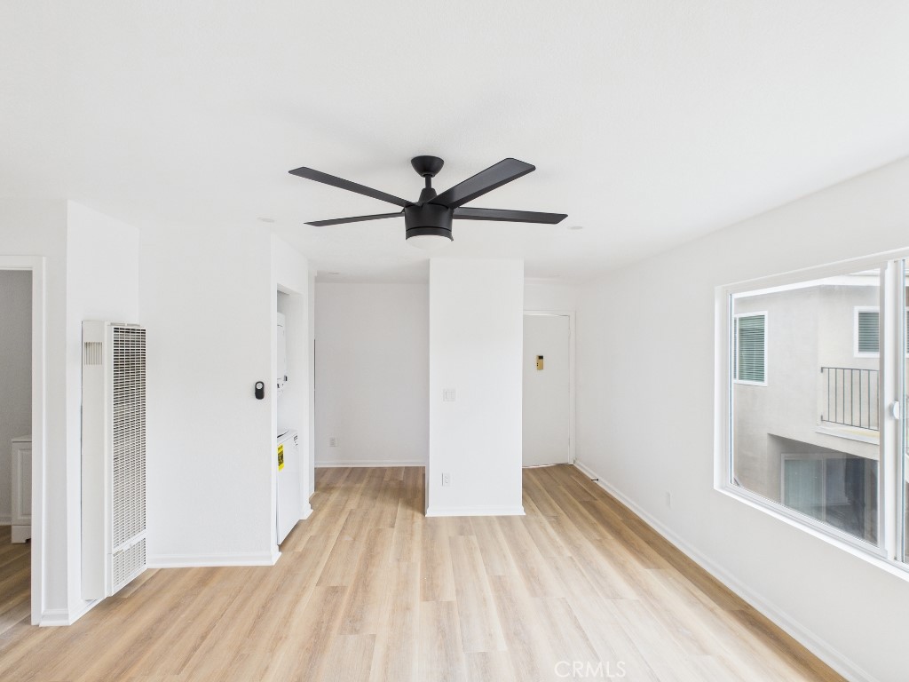The modern kitchen is equipped with stainless steel appliances, while the convenience of an in-unit washer and dryer, along with heat and air conditioning, ensures year-round comfort and ease.