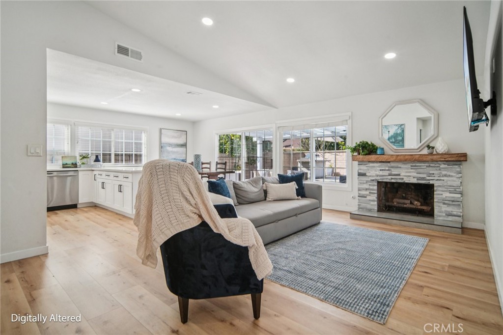 Cul-de-sac Pool Home Just Minutes from the Beach! Welcome to this beautifully renovated 4-bedroom pool home ideally located on a quiet cul-de-sac in a desirable Huntington Beach neighborhood, just a short walk to Hope View Elementary and only minutes from the sand and surf. This light-filled home offers an open and inviting floor plan with vaulted ceilings, a stylish stacked-stone fireplace, and luxury vinyl flooring throughout—perfect for easy coastal living. The spacious kitchen is designed for both everyday living and entertaining, featuring white shaker cabinetry, quartz countertops, stainless steel appliances, recessed LED lighting, and a large center island for gathering. All four bedrooms are generously sized with mirrored wardrobes, while both bathrooms have been tastefully upgraded with modern tile surrounds and updated fixtures. Step outside to your private backyard retreat featuring a saltwater pool, built-in BBQ area, and plenty of space for entertaining, relaxing, or enjoying sunny Southern California afternoons. Additional features include newer central air conditioning, dual-pane windows, updated plumbing and electrical, and an oversized two-car garage with a professionally finished epoxy floor. Ideally located near parks, shopping, dining, top-rated schools, and Huntington Beach’s world-famous coastline, this move-in ready home offers the perfect blend of comfort, style, and coastal lifestyle.