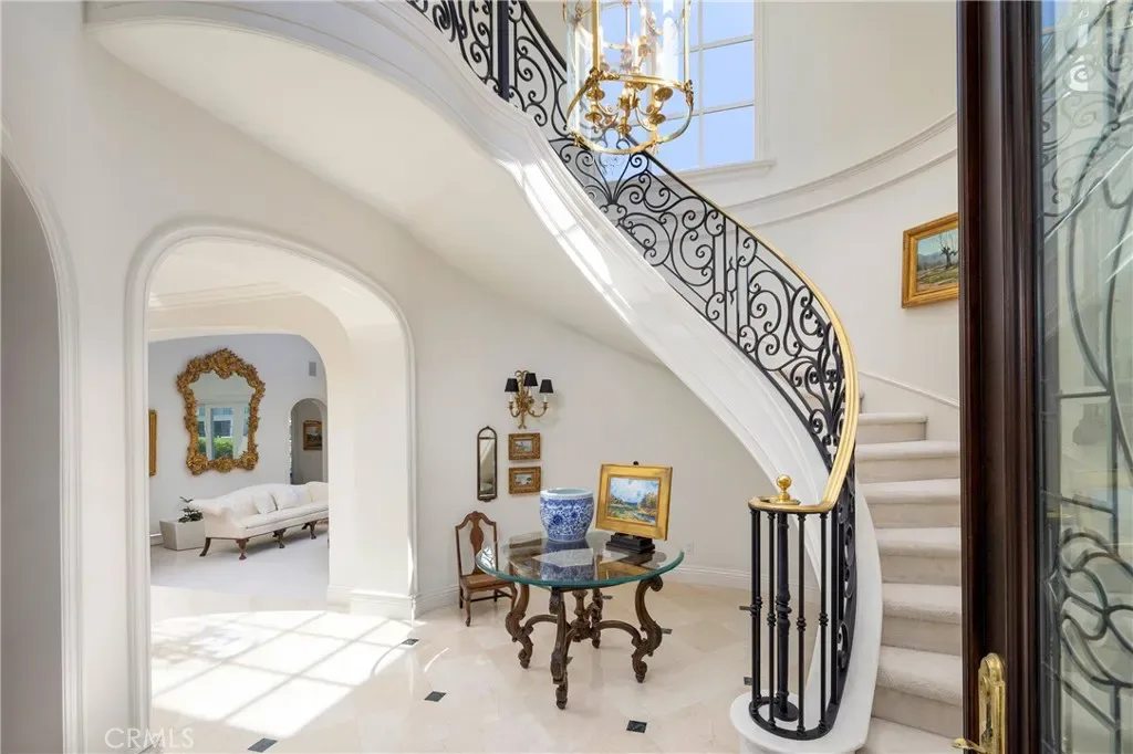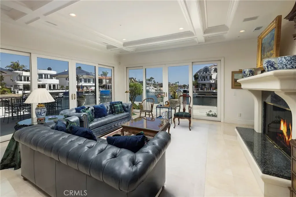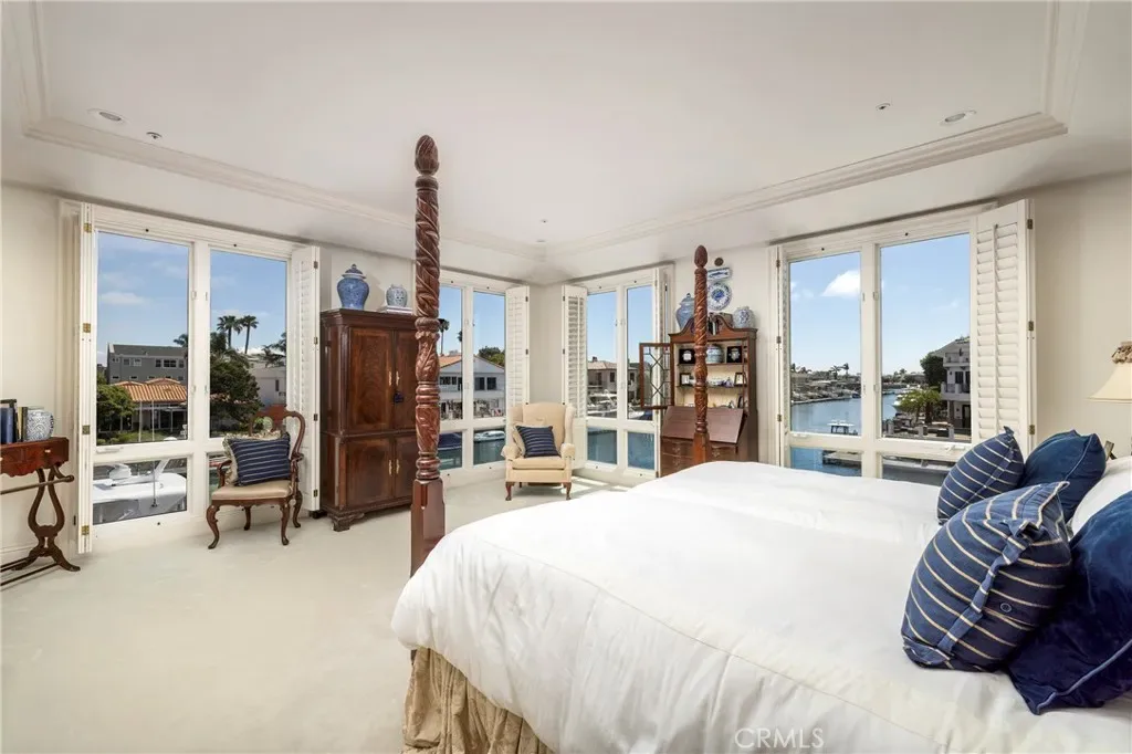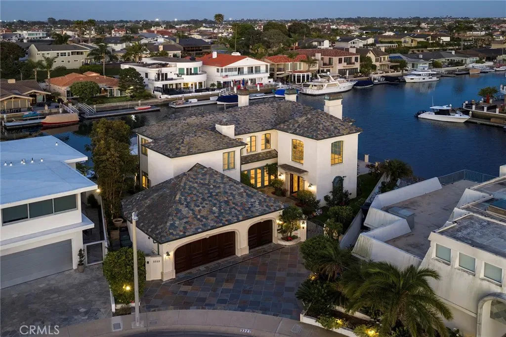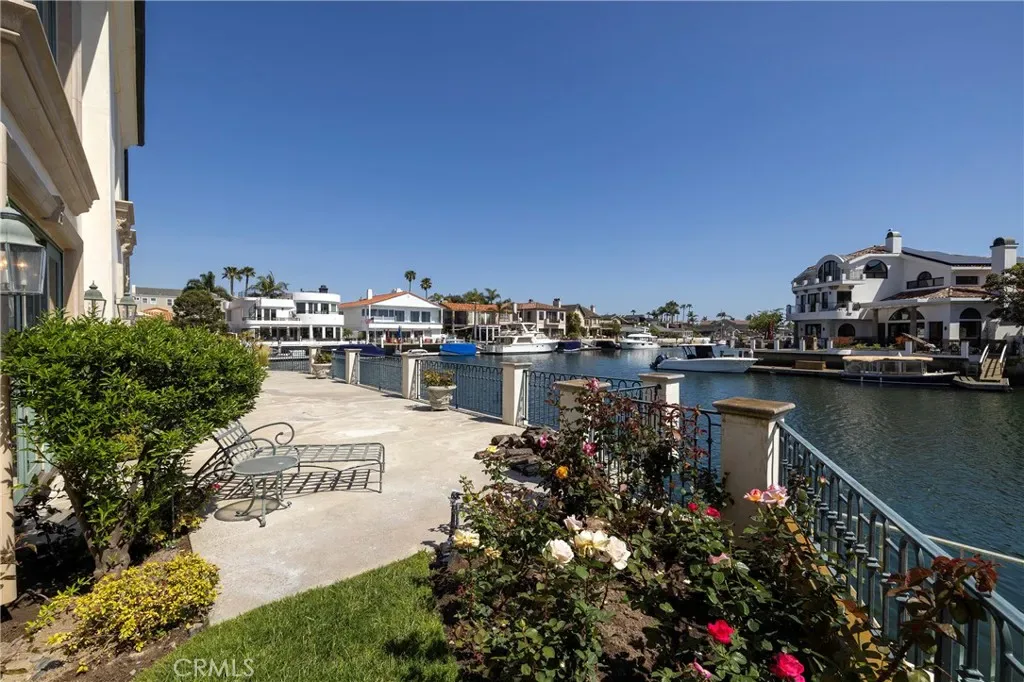 Positioned on a rare corner point within Huntington Harbour, this custom built French Provincial residence commands one of the community’s most exceptional waterfront settings – defined by two-sided water exposure, expanded channel frontage, and large dock that could be expanded up to 170 feet. Set on an approximately 8000-square-foot parcel, the home encompasses over 4,500 square feet of interior living space, with 3 car garage, four bedrooms, all en-suite and four-and-a-half baths arranged across a generous, highly livable floor plan. The home’s dramatic foyer and sweeping staircase contribute to the structural presence and underlying scale that define the Harbour’s most substantial properties — and that provide the foundation for elevated living. Where most waterfront properties offer a single linear edge, this rare point location broadens the visual field, deepening the connection to the surrounding channels, and creating a spatial relationship to the Harbour with maximized captivating views. The interior spaces are organized around volume and natural light, with well-proportioned living areas designed to support both comfort and larger-scale entertaining. A clear separation between primary and secondary spaces allows the home to function with ease across a range of uses, with the primary suite positioned as a private retreat and additional en-suite bedrooms offering flexibility for guests or extended family. The strong architectural foundation, along with layers of fine materials, enhances the entire dwelling. A small selection includes a dramatic stair; abundant use of stone and custom millwork; three fireplaces; multiple rooms complemented by elegant ceiling details; and an impressive assemblage of custom windows, French doors, and stacking rows of glass capturing cascading illumination and the splendid exterior surround. The outdoor spaces provide a delightful extension of the residence with a private, verdantly landscaped garden courtyard and a sprawling, wrapping waterside terrace. Set just moments from the sands of Sunset Beach, the property is further distinguished by its optimal proximity to the region’s myriad recreational offerings, sought-after dining and shopping, as well as community and local resources – an optimal opportunity to enjoy the benefits of a coastal lifestyle and elegant accommodations.