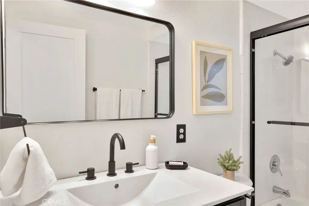 The primary bedroom offers a serene retreat with brand-new French doors to the patio and extensive closet space with custom cherry wood doors and cedar-lined interiors. Notably, this end-unit is the only one in the community with three added windows along the bedroom walls, maximizing light, airflow, and privacy. The secondary bedroom features a high ceiling and plentiful light. All interior doors, closet doors, and shower and tub enclosures are brand new.