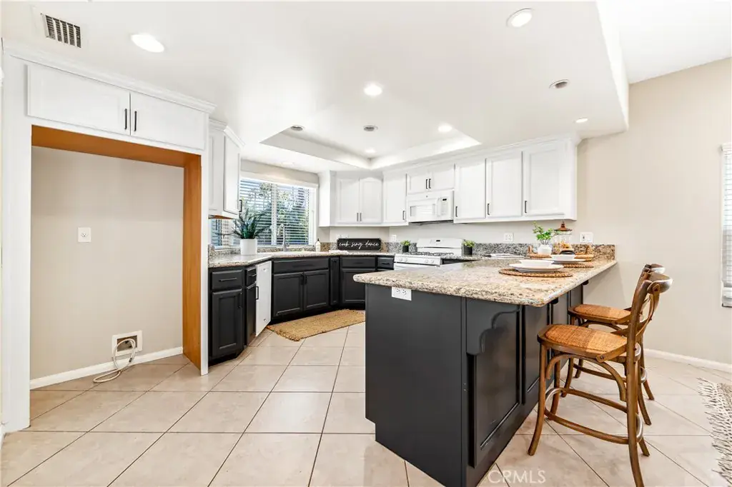 This three-bedroom, two-and-a-half-bath home is a true gem — warm, inviting, and move-in ready, with room to make it your own. The spacious U-shaped kitchen anchors the main living spaces and features over 20 cabinets, granite counters, and an extended breakfast bar that seats six for casual dining. The kitchen flows seamlessly into the family, living, and dining rooms, all enjoying open sightlines and wall-to-wall sliders that connect to the private backyard patio — perfect for entertaining. A cozy floor-to-ceiling fireplace adds charm and warmth.