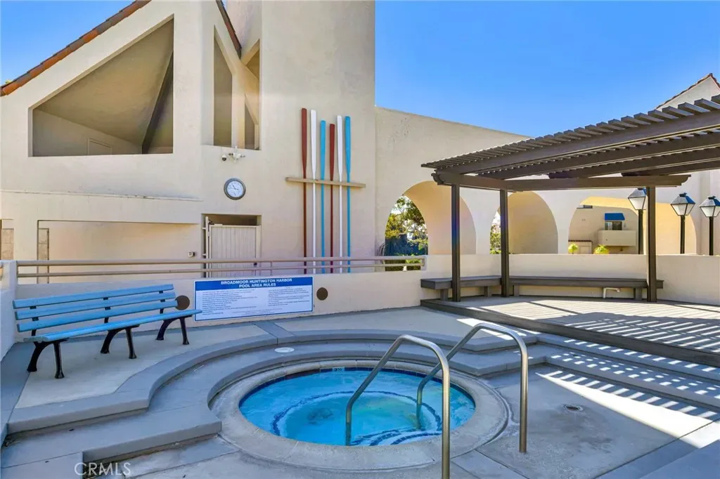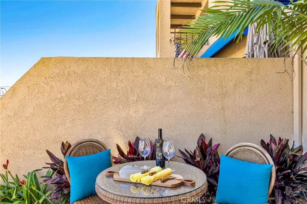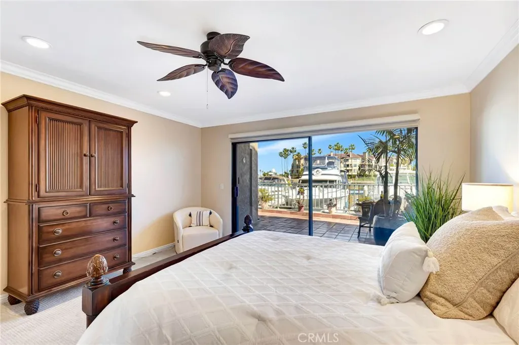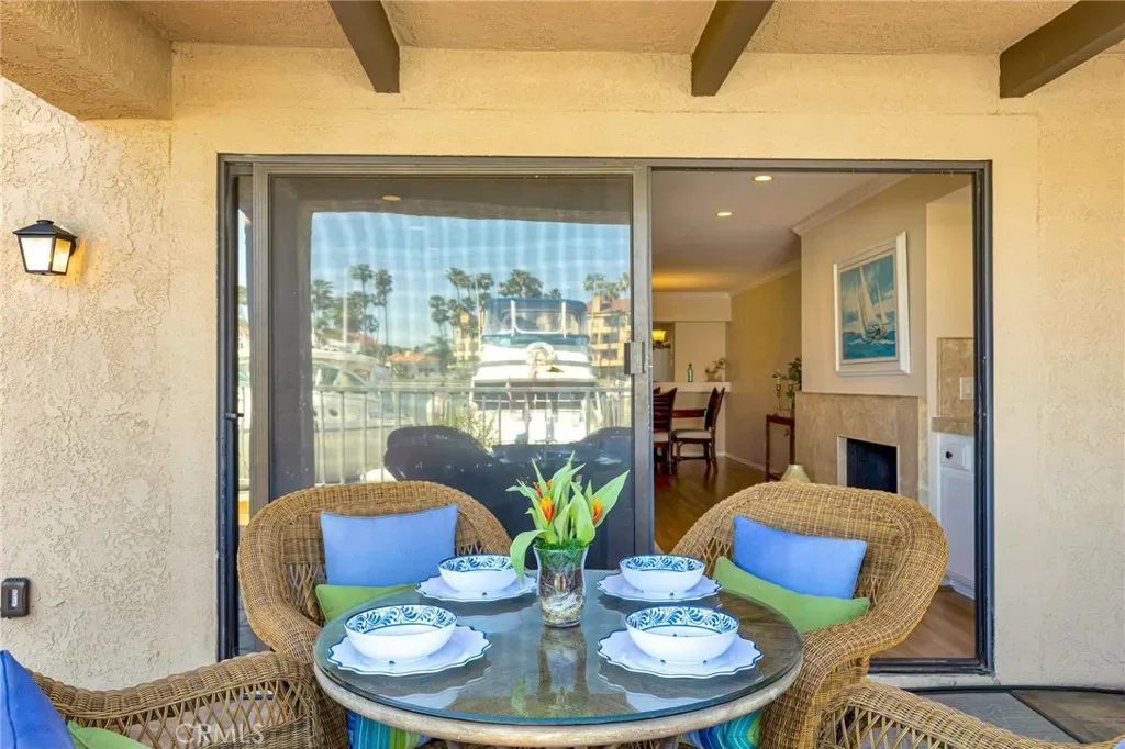 RARE GROUND FLOOR SINGLE LEVEL CONDO, located in the gated Broadmoor Huntington Harbor community, directly on the Main Channel across from Sunset Beach. This seldom available home offers no interior or exterior steps and includes a detached two-car garage with ample storage and direct access to the front door! The open floor plan features a bright living and dining area with a gas fireplace, wet bar, and sliding glass doors leading to a spacious waterfront patio—ideal for entertaining, relaxing, or enjoying the boat parade. The kitchen is large enough for a breakfast nook or additional island, and the primary suite offers patio access through sliding glass doors with remote-controlled blinds. The spacious 2nd bedroom has an adjacent full bathroom. Resort-style amenities include a pool, spa, tennis and pickleball courts, and a scenic lagoon with pedestrian bridges. Conveniently located within walking distance to the beach, shops, and restaurants. Not many of the units have all these wonderful amenities, which makes this unit rare and special.
