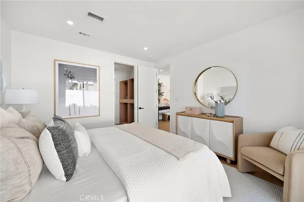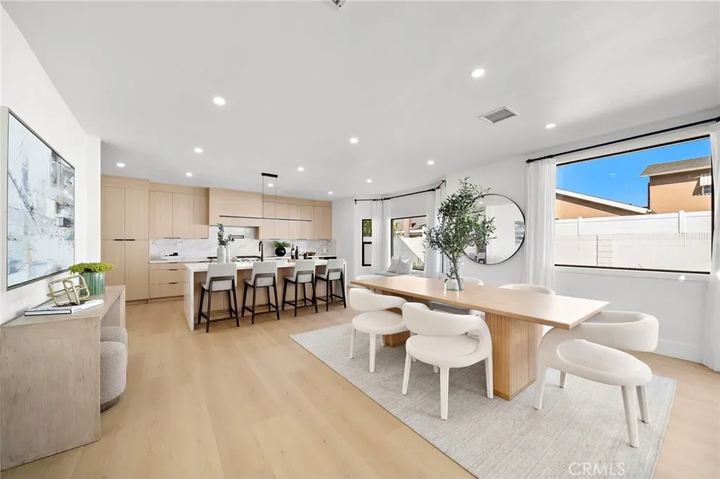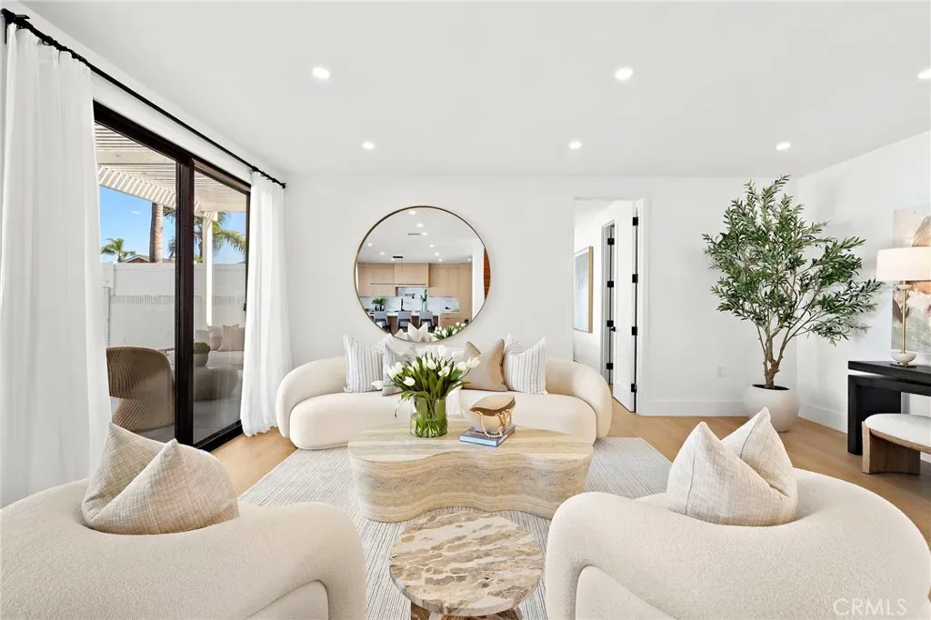 This Crisp Contemporary California Classic home has been beautifully remodeled and upgraded throughout! As you enter the massive private gated courtyard you are immediately impressed by the tranquil ambiance this home has to offer. Exceptional open concept living space affords the ultimate in relaxed elevated living. Rich white oak premium LVF plank flooring flows seamlessly throughout the residence. The kitchen is an absolute showstopper with a massive center island with waterfall edge detailing. Sleek Malaysian Calcutta Veneta Quartz counter tops allow for ample counter space. The rich modern cabinetry is custom built with soft close features. High end appliances including Sub Zero Refrigerator, Thor restaurant grade range and Bosch dishwasher. Full quartz backsplash with pot filler and beverage cooler completes the space. The primary suite is conveniently located downstairs and has a large walk-in closet with built in storage. The primary bath is spa like in design and offers a lovely soaking tub, walk in shower with designer selected tile and dual vanity and sink areas. Opulent sconce lighting and designer selected fixtures and fittings. The downstairs office is ample in size and can be utilized as a bedroom. If the buyer would like the seller will install a custom closet for the buyer. Upstairs you will find two additional generously sized bedrooms and another fully remodeled bath. The rear grounds of the property offer another large patio area and lush rolling lawns for you relaxation and entertainment needs. There are new black frame double pane windows and sliders and new window coverings. The roof is brand new and comes with a full warranty. There is a new electrical panel, new furnace, new water heater and new air conditioning unit. All work was done to code and fully permitted by the City of Huntington Beach. Come and enjoy all that Huntington Beach Coastal living has to offer in this truly turnkey home!