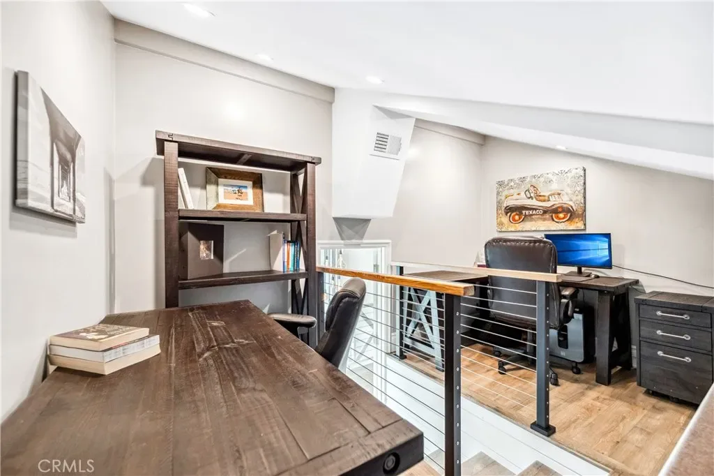 An office nook provides ideal space for remote work or study. Outdoors, the property becomes a private resort with pool, spa, waterfalls, outdoor kitchen, and lush tropical landscaping. Behind the beauty are thoughtful upgrades including owned solar, dual-zone climate control, tankless water heater, whole-home sound, updated pool equipment, and numerous improvements throughout.