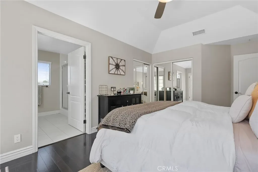 Nestled in the highly sought-after Cathedral Pointe community, this beautifully updated two-bedroom home features dual master suites—perfect for a teenager, extended family member, or roommate. Located on a quiet interior lot within a private gated enclave of just 25 homes, it offers a detached feel with a private garage, top-rated Huntington Beach schools, and close proximity to the beach. The pleasant curb appeal of this French-style home, from the front porch to the arched brickwork and classic symmetry, is always inviting. Entering the residence, this popular floor plan offers a dual master bedroom on the entry level with a full bath. As you make your way up to the second level, there is a nicely sized living room with a gas fireplace and a herringbone marble façade, a ½ bathroom, laundry closet with 220V hookups, dining space, and a mix of hardwood and tile flooring throughout the main living areas.The efficient layout flows into a well-appointed kitchen with white cabinets, quartz countertops and subway tile backsplash, recessed lighting, and stainless steel appliances. Just off the kitchen, sliding doors lead to a nicely sized patio, perfect for morning coffee, intimate gatherings, or weekend BBQs. Heading upstairs, the second primary suite features high ceilings, 2 closets with mirrored closet doors, an en-suite full bathroom with dual sinks, a step-in shower with separate soaking tub, and access to the top-level balcony. Perfect for taking in daily sunsets, watching the famous Huntington Beach Air Show and the night skies! Additional highlights include neutral colored paint throughout, updated finishes, scraped ceilings, and central heating. Enjoy the amenities Cathedral Pointe has to offer including a newer community pool and spa! Close by, Helme Park and playground offer space for walking, playing with kids and pets, or simply enjoying the outdoors. This interior tract home is also close to award-winning schools, a short commute to world-class beaches, and the fine dining, entertainment, and shops at Main St, Pacific City, Bella Terra, Costco, Trader Joes and Whole Foods. Also nearby are HB Central Park, the Library and Senior Center, HB Sports Complex, the Equestrian Center, Meadowlark Golf Course, South Coast Plaza, the OC Fair Grounds, and much more! Easy access to major freeways and PCH. Experience the best of California coastal living all year round!