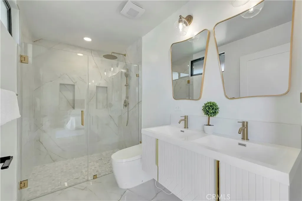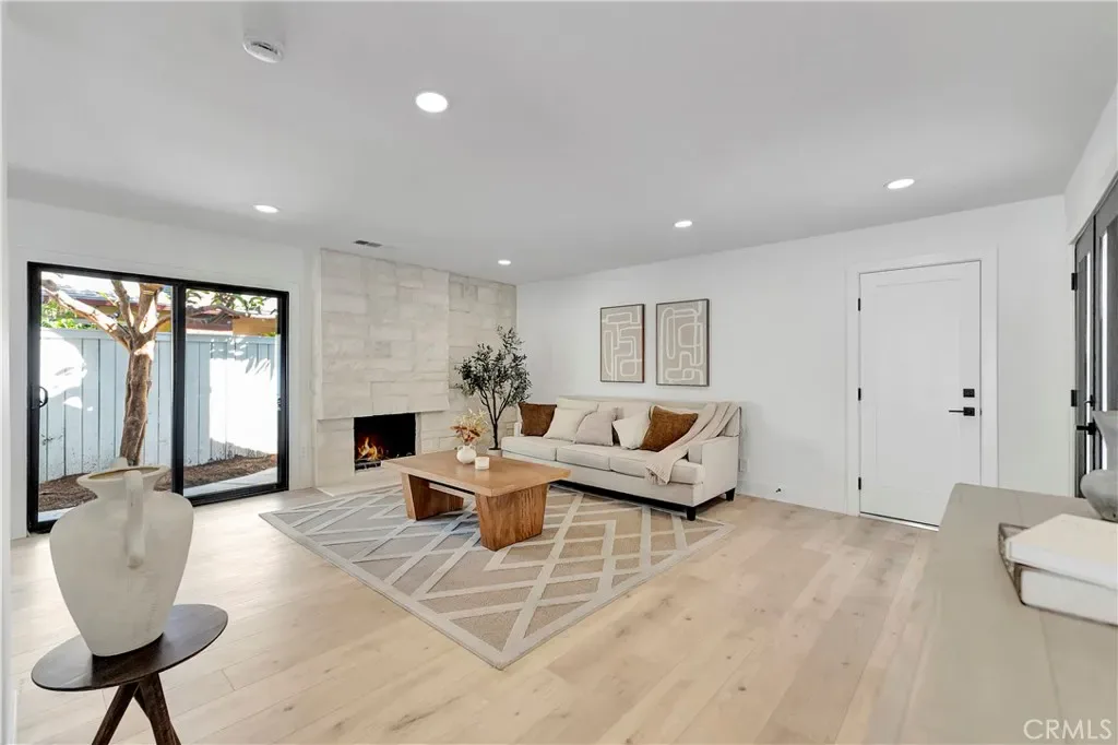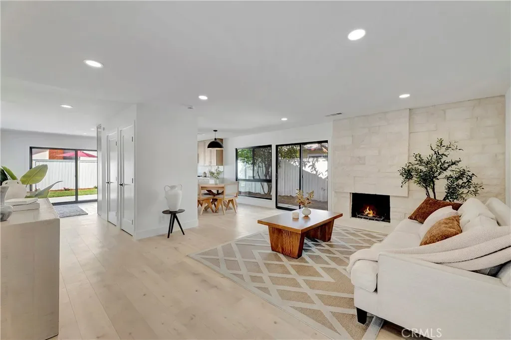 Stunning single-level coastal modern home that has been completely reimagined with timeless style and high-end finishes throughout, ideally situated on a fabulous, quiet, interior, corner lot location. This beautifully remodeled 4-bedroom, 2-bath residence offers an effortless blend of warmth, sophistication, and functionality. With a new HVAC and brand new electrical panel. Step inside to discover a bright, open-concept floor plan filled with natural light and sleek designer details. The spacious living area centers around a striking modern fireplace, creating an inviting focal point perfect for both relaxing and entertaining. The chef-inspired kitchen features warm natural wood cabinetry, stylish countertops, stainless steel appliances, a large island with seating, and a spacious dining area ideal for gatherings. Both bathrooms have been fully remodeled with modern gold fixtures, floating vanities, and elegant finishes, evoking a spa-like sense of luxury. The thoughtfully designed layout includes four well-appointed bedrooms, offering flexibility for guests, a home office, or growing families. Outside, enjoy a private backyard retreat—a perfect setting for outdoor dining or soaking in the coastal breeze. The attached 2-car garage features new epoxy floors and direct access into the home for added convenience. Ideally located in a desirable Huntington Beach neighborhood near top-rated schools, parks, shopping, dining, and easy freeway access, this home perfectly captures the essence of modern coastal living.