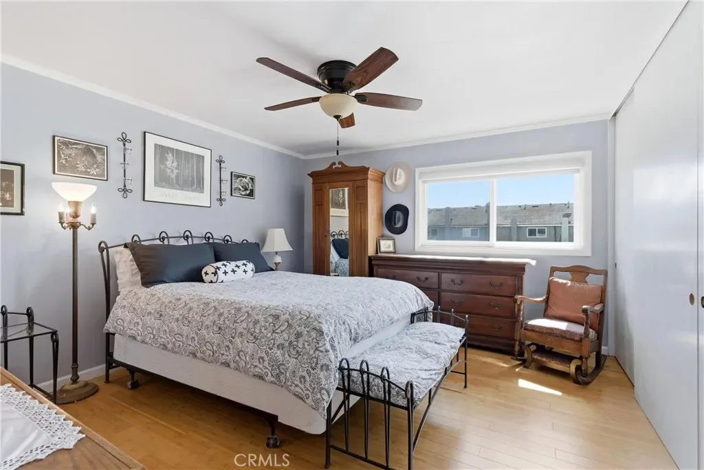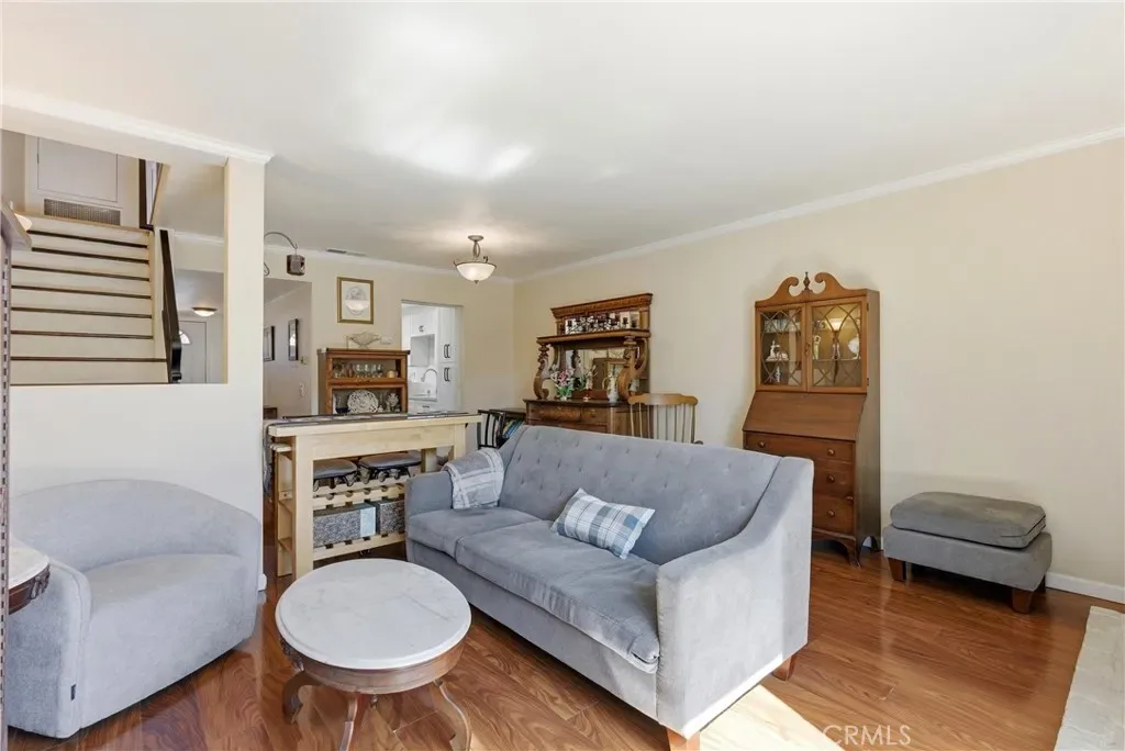 Well-maintained and beautifully updated, this 2-bedroom home in Cherrywood Village offers 1,065 sq. ft. of comfortable living space and the perfect blend of modern upgrades and coastal charm. Located approximately three miles from the world-famous Huntington Beach, “Surf City,” this sought-after community delivers the best of beach-close living. The home features a fully remodeled kitchen with quartz countertops, recessed lighting, a nearby pantry, and a custom built-in wine rack. A cozy dining area sits just off the kitchen, creating a warm and inviting space for everyday meals. The spacious living room, complete with a fireplace, opens to a good-size private patio perfect for entertaining or enjoying Huntington Beach’s cool ocean breezes. The two-car garage provides direct access to the generously sized patio. Upstairs, the primary bedroom includes a convenient quarter-bath vanity area. The second bedroom showcases custom French doors that open to a light-filled balcony and offers built-in dresser drawers and shelving. A dedicated upstairs laundry area with built-in cabinets adds convenience, along with pull-down attic access for additional storage. Additional highlights include wood and bamboo flooring, raised-panel doors, custom bathroom vanities, closet organizers, crown molding, ceiling fans, and custom window coverings. Residents also enjoy access to a nearby gated community clubhouse, pool, and spa. Ideally located near fine dining, shopping, schools, Helme Park, churches, entertainment, and just a short bike ride to the beach. Cherrywood Village offers coastal living at an exceptional value.