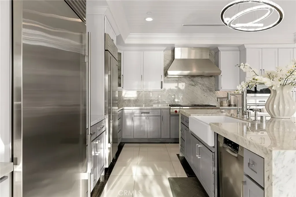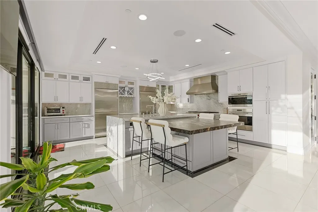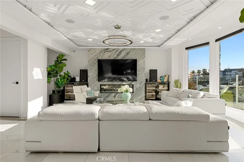 Set in Coral Cay – Huntington Harbour’s most coveted 24-hour guard-gated enclave of just over 100 properties. This contemporary waterfront masterpiece redefines luxury living. Completely rebuilt in 2021, the approximately 4,800-square-foot residence blends modern sophistication with California Mediterranean warmth. It is perfectly situated on a premier 7,200-square-foot parcel, offering captivating bay views, dazzling nighttime lights, and spectacular south-westerly sunsets. Designed for both lavish entertaining and serene everyday living, the meticulously crafted floor plan features five bedrooms—including two spectacular waterfront primary suites—and 6.5 spa-inspired bathrooms. Oversized windows and walls of glass flood the interiors with natural light, highlighting exquisite finishes like imported stone, custom ceiling designs, and designer lighting. The chef’s kitchen is fully equipped with top-tier Wolf, Bosch, and Sub-Zero appliances, complemented by a spacious, dedicated wine room. The outdoor living spaces are an effortless extension of the home. Boasting a rare 103 feet of water frontage, the exterior features an expansive water-level terrace, an elevated terrace off the bonus room, three balconies, and a glass-enclosed sunroom. Boaters will relish the exceptional private dock, capable of accommodating an 85-foot vessel. Residents of Coral Cay enjoy exclusive access to lush greenbelts, lighted tennis and pickleball courts, and a private beach. This exquisite home is a rare opportunity to enjoy the ultimate waterfront lifestyle, just minutes from Southern California’s premier dining, shopping, and recreation.