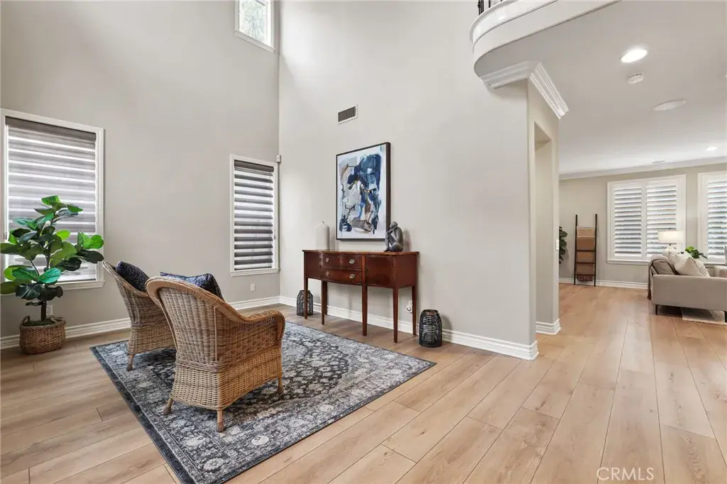 Welcome to coastal elegance in the exclusive gated community of Crystalaire, just moments from the sand and vibrant Downtown Huntington Beach. Ideally positioned on the only cul de sac in the neighborhood and backing to a peaceful greenbelt, this beautifully refreshed residence offers rare privacy and one of the most desirable floor plans. Of the three architectural models in Crystalaire, only this design features both a private courtyard entry and a traditional three car garage, creating a distinctive blend of charm, function, and outdoor living. The welcoming courtyard sets the tone for relaxed coastal living, offering a quiet space to enjoy morning coffee or evening gatherings before stepping inside. Soaring ceilings and natural light create an inviting first impression, enhanced by fresh interior paint and updated finishes throughout. The thoughtfully designed floor plan features wide plank flooring, new plush carpet upstairs, and a striking linear fireplace anchoring the expansive great room. The spacious great room was originally designed by the builder with an option for a downstairs bedroom, allowing a future owner to convert the space if desired. Plantation shutters add warmth and character, while vertical blinds frame the sliding doors leading to the backyard. The open concept kitchen is designed for everyday living and entertaining, appointed with quartzite countertops, stainless appliances, a new GE Café dishwasher, new GE Café double ovens, and generous cabinetry. Upstairs, the private primary suite offers a spa inspired retreat with marble finishes, soaking tub, walk in shower, dual vanities, and spacious custom closets. Three additional bedrooms and an updated bath provide flexibility for family, guests, or work from home needs. Major system upgrades provide peace of mind, including two new furnaces, two new air conditioning units, a new water heater, and a water filtration system. The exterior has been freshly painted, and the attached three car garage features an epoxy floor finish and new garage door openers. The backyard offers effortless entertaining with a built in stainless barbecue and greenbelt views. Crystalaire offers a resort lifestyle with pool, spa, kiddie pool, greenbelts, and community events, all about two miles to the beach. Gated access provides security while maintaining convenience. This is more than a home. It is one of the community’s most distinctive and sought after floor plans in the heart of Huntington Beach.