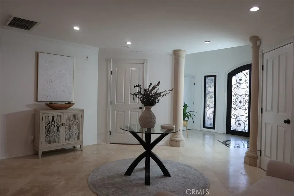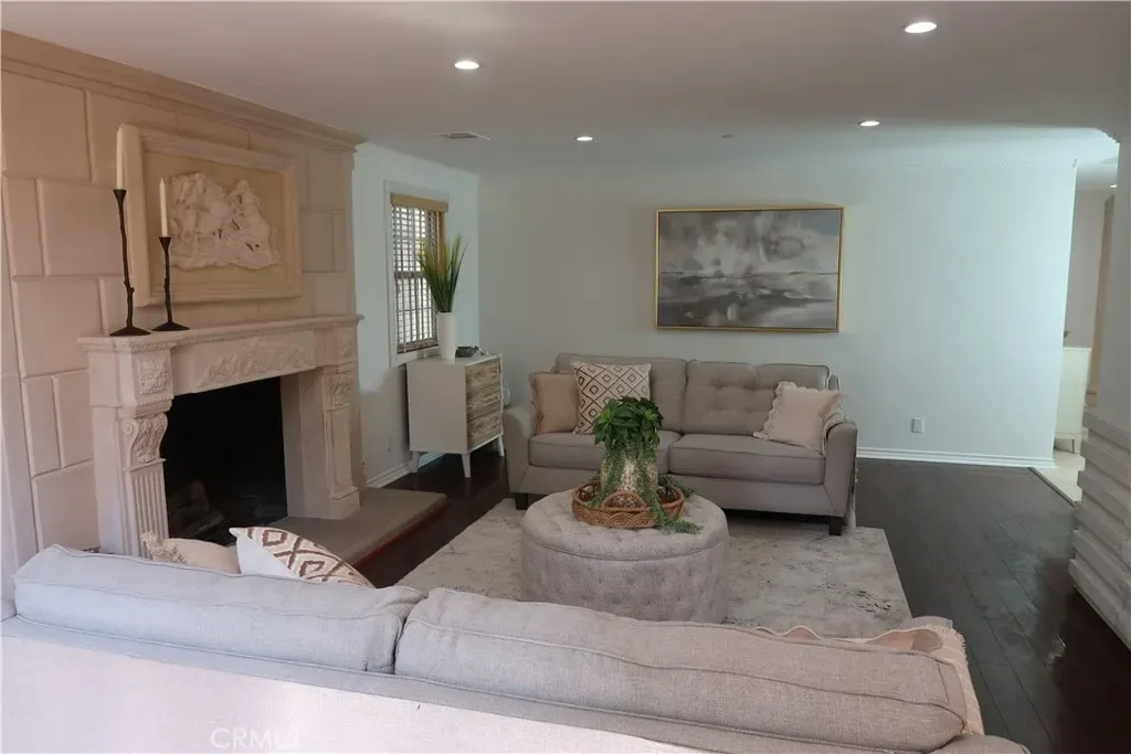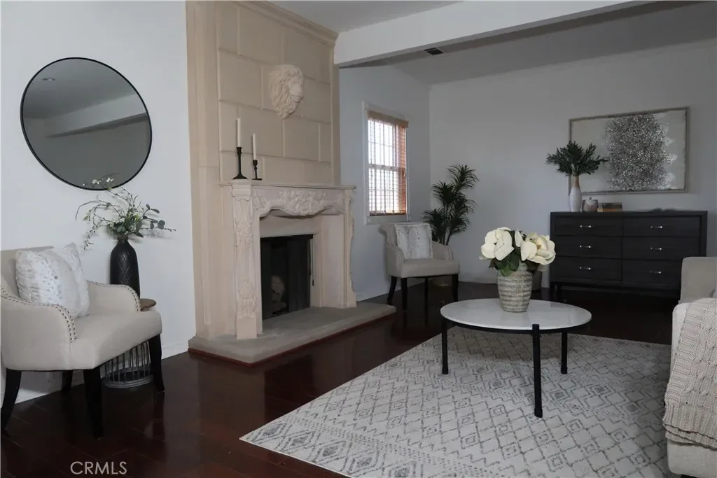 At the heart of the home is a stunning Tuscan-inspired chef’s kitchen, beautifully designed for both everyday living and grand entertaining. The kitchen flows seamlessly into a glamorous family room highlighted by a dramatic oversized fireplace, creating a warm and inviting atmosphere.