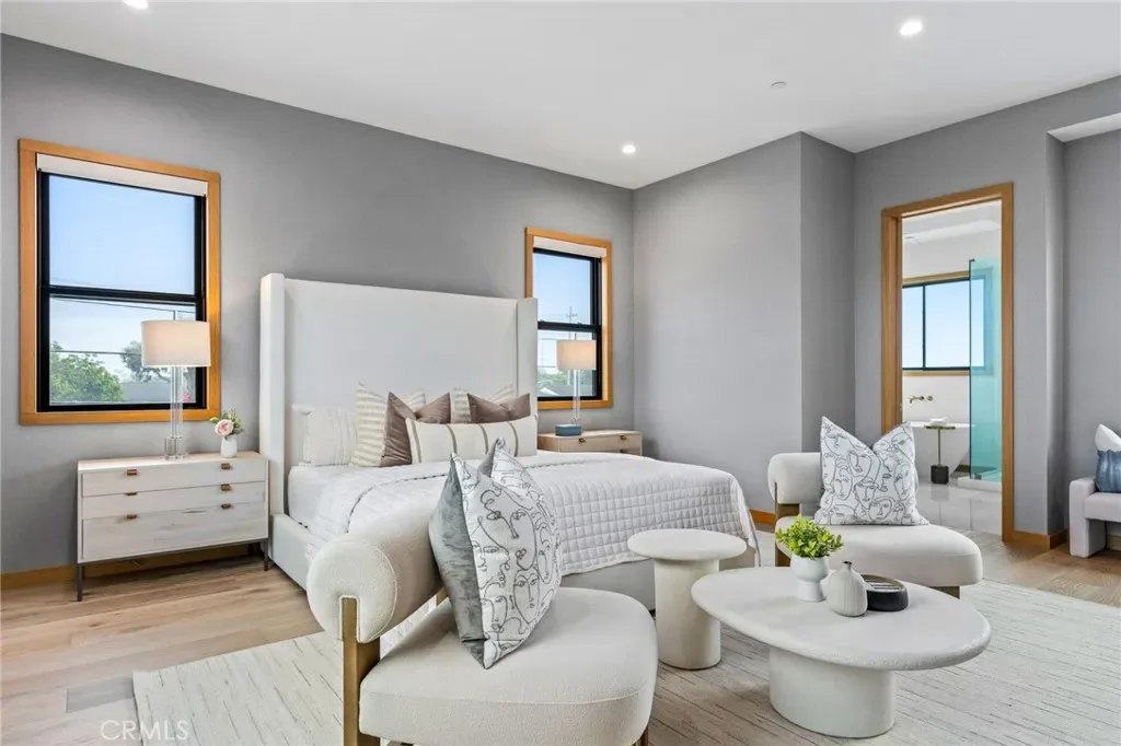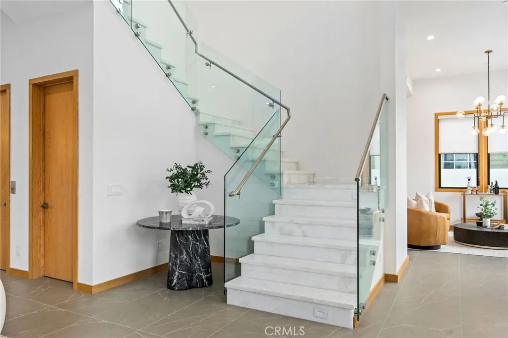 This newly completed Huntington Beach showpiece delivers a rare combination of contemporary architecture, elite craftsmanship, and an unbeatable Lake Park location just minutes from the coast, pier, Pacific City, and premier dining. Designed with intention and executed with exceptional materials and meticulous detailing, the residence opens through a custom pivot door into soaring volumes and a layout created for both refined daily living and elevated entertaining. Large-format tile and wide-plank engineered wood flooring flow throughout the main level, where formal and casual living spaces connect seamlessly to a designer kitchen anchored by professional Wolf and Sub-Zero appliances and dramatic stone surfaces. Custom bi-fold doors extend gatherings outdoors, while Restoration Hardware lighting, precision-built interior doors with German hinges, and integrated power shades underscore the home’s exacting level of finish. The home is anchored by a sculptural White Rhino marble staircase and private elevator, opening to a second-floor family lounge and open-to-below architectural feature. The primary suite commands its own wing, complete with walk-in dressing room and spa-inspired bath showcasing bookmatched Taj Mahal slab stone and floor-to-ceiling marble. Additional ensuite bedrooms are equally polished with Porcelanosa tile and custom details throughout. White Rhino marble staircases, a standing-seam metal roof, multiple climate zones, generous laundry room, and an oversized three-car garage with lift potential further elevate the home’s pedigree. A statement of modern coastal luxury built without compromise — this is a residence defined by materials, scale, and enduring quality in one of Huntington Beach’s most desirable neighborhoods.
