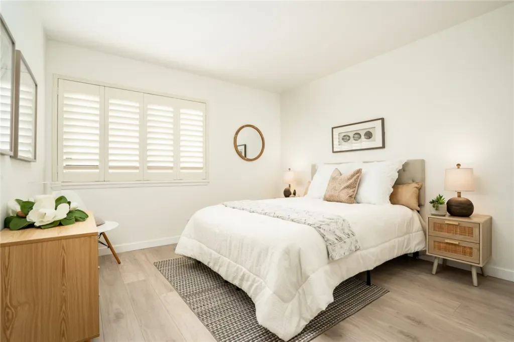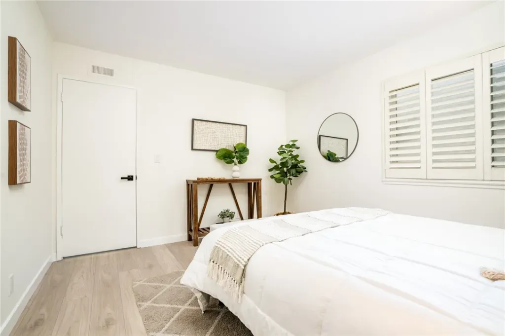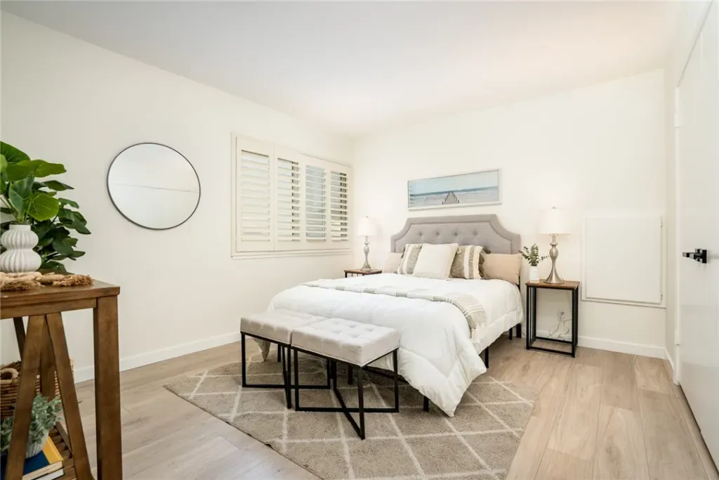 THERE’S NO PLACE LIKE HOME!!! Finally, a fully detached single family residence in Downtown HB at a very, very affordable price. This beach-chic meets coastal modern home with 4 bedrooms + 2.5 bath home + 2 car garage offers 1,825 sqft. of open-flowing living area on a generous 3,300 sqft. lot w/fenced front yard and large private patio. The longtime, loving Owner has just installed gorgeous laminate flooring, painted the interior, and updated fixtures & hardware throughout. This home features a very rare, huge downstairs primary bedroom w/beamed & vaulted ceilings + ceiling fan that will easily accommodate all of your large bedroom furniture. The ensuite primary bath was recently remodeled using the finest materials and boasts a highly upgraded walk-in shower. The living room has a spectacular brick fireplace and large garden bay window. There are 3 spacious bedrooms upstairs that all have large closets and plantation shutters. The kitchen features granite counters, lots of cabinetry & pantry space, and a full suite of appliances. Additional upgrades include dual pane windows, plantation shutters, and an open tread staircase. There’s even a full-size laundry downstairs that offers both gas and electric dryer hookups. You’ll enjoy year round balmy breezes in your private rear patio w/brick hardscape and covered patio. The detached 2 car garage w/garage door opener & rollup door offers perfect parking for your cars and additional storage areas. This home has untapped value and potential by creating an ADU with no need for exterior construction or expansion. You have top rated HB schools nearby at Smith Elementary (8), Dwyer (7), and Huntington High (9). You’re just a quick jog or bike ride from world famous HB Pier, Shops, Restaurants, and Surf City USA’s beach!