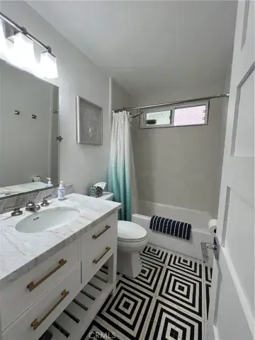 LOCATION LOCATION LOCATION * Welcome to Surf City USA! Steps away from the sands of Huntington Beach and walking distance to Downtown Main Street, HB Pier, Pacific City Shopping and the Dog Beach. Enjoy the Beach lifestyle in this Beautifully remodeled ground floor, 1 bedroom, 1 bathroom home with a 1-car garage, washer and dryer, and an open floor plan. Upgraded improvements including shaker style doors, recessed Lighting, plantation shutters, dual pane windows, premium hardwood floors. This kitchen has been gorgeously remodeled with modern white shaker cabinetry, marble countertops, and stainless-steel appliances. The large master Bedroom includes a full-size washer and dryer. The Dining area is outside of the kitchen and has a Restoration Hardware Pendant Light in a polished nickel finish. The large Family Room has recessed lighting and a designer ceiling fan. The bathroom is remodeled with modern floor tiles, newer modern white vanity and & DESIGNER TILE in the shower/tub surround. The Master bedroom is light & bright with recessed lighting, a designer ceiling fan and has a Stackable Washer & Dryer by the closet area.