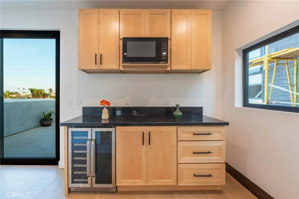 Take the elevator or ascend the glass-paneled staircase to your private retreat on the second level, highlighted by a primary suite with a floor-to-ceiling marble fireplace, private balcony, custom-organized walk-in closet, and a spa-inspired bath with soaking tub, glass-enclosed shower, marble-accented walls, dual vanities with double sinks, and gold-finished fixtures throughout. Completing this level are two additional bedrooms with ensuite baths and a laundry room equipped with new washer and dryer. The third level offers a spacious bonus room with full bath, mini kitchenette, and wine refrigerator, opening to two separate sundecks for ocean breezes and sunset views.
