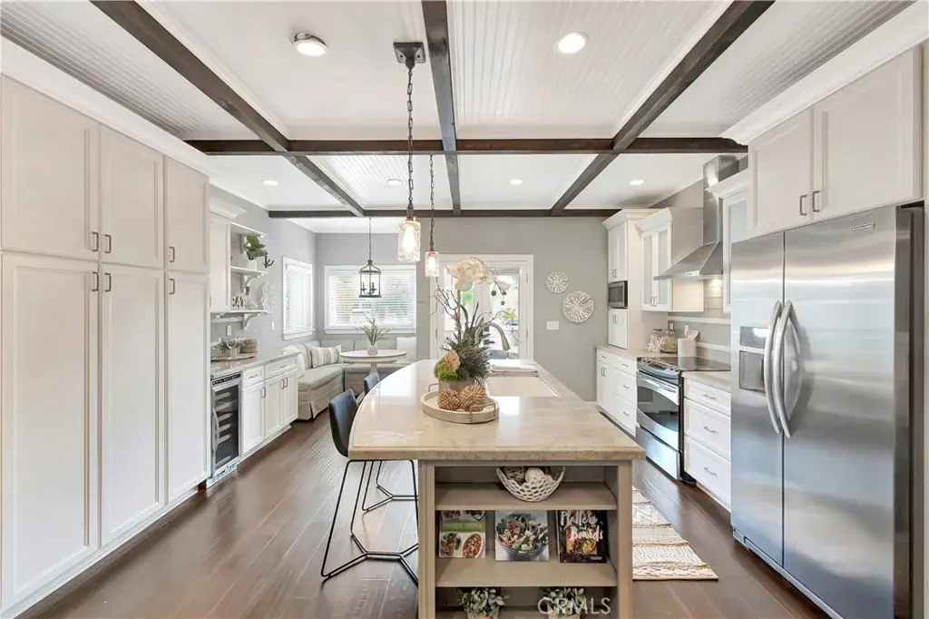 Only five blocks from the sand and moments from downtown, this standout Huntington Beach home offers a refined take on coastal living. Spanning approximately 2,700 square feet, it combines refined design, custom craftsmanship, and effortless livability in one beautifully curated package. Inside, natural light and elegant upgrades define the open-concept layout. The main level features a welcoming living room with a cozy fireplace and access to a private side yard, a half bath, and a convenient laundry room with sink that connects directly to the two-car garage. The chef-inspired kitchen is a true centerpiece, showcasing custom ceiling with wood beams, shaker cabinets, a spacious center island with bar seating, a built-in breakfast nook, and premium stainless steel appliances. The space flows easily into the formal dining area and out to a private front patio complete with a firepit, perfect for relaxed evenings and ocean breezes complete with a gas line to easily add a built-in BBQ center. Upstairs, the primary suite offers a tranquil escape with a double-sided fireplace, a generous walk-in closet, balcony, and a spa-caliber bathroom with dual vanities, a soaking tub, and a walk-in shower. Two additional bedrooms and bathrooms are thoughtfully positioned nearby, while a bonus room with soaring ceilings and a fireplace creates the perfect spot for a media room, lounge, or home office. A versatile loft on the upper level opens to the rooftop deck, where panoramic views set the stage for unforgettable entertaining or quiet sunset moments. With three fireplaces, stylish hard-surface flooring, custom paint, new tankless water heater, outdoor shower on side patio and designer touches throughout, this home exudes warmth and sophistication. Blending the ease of indoor-outdoor living with the unbeatable proximity to the ocean, dog beach, and downtown’s premier shopping and dining, it represents the best of Huntington Beach coastal luxury all in an award winning school district!