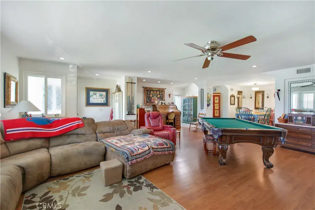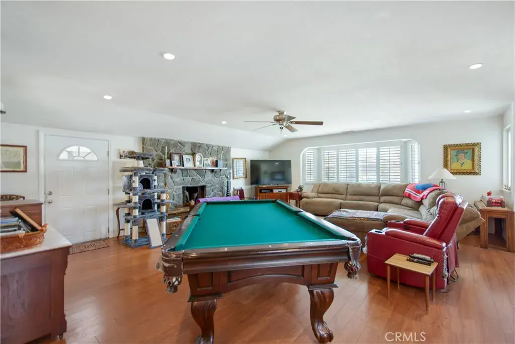Home has a Large Living room with Fireplace and Laminate flooring. OPEN to the Family/Dining room and OPEN to the kitchen! This area has room for a Pool Table (currently in home) and a Piano (currently in home)! Lots of room for many various possibilities!