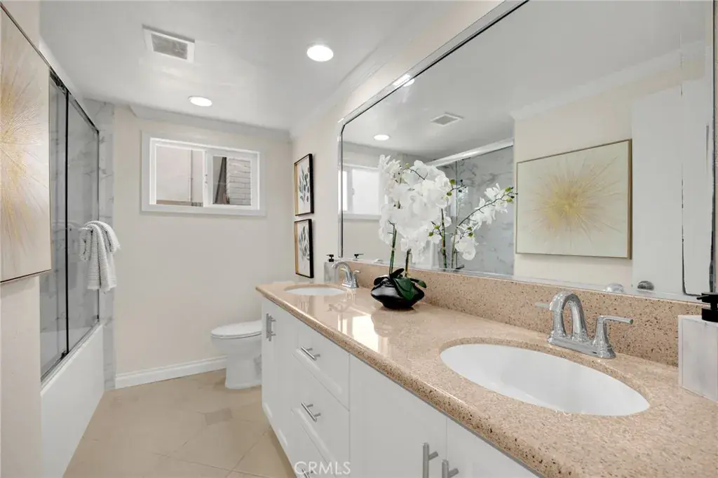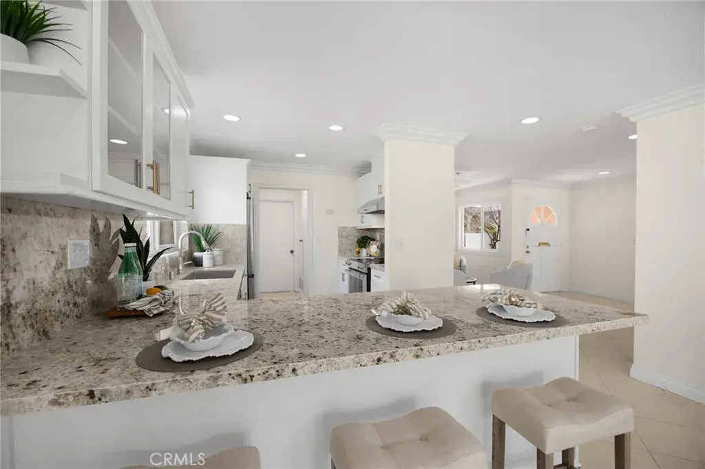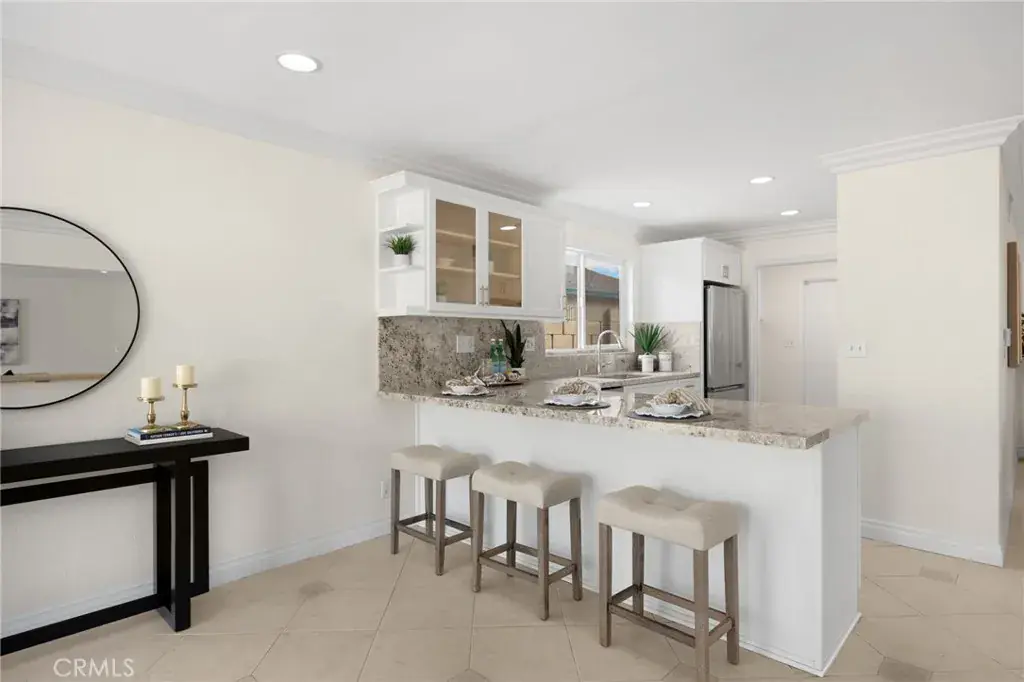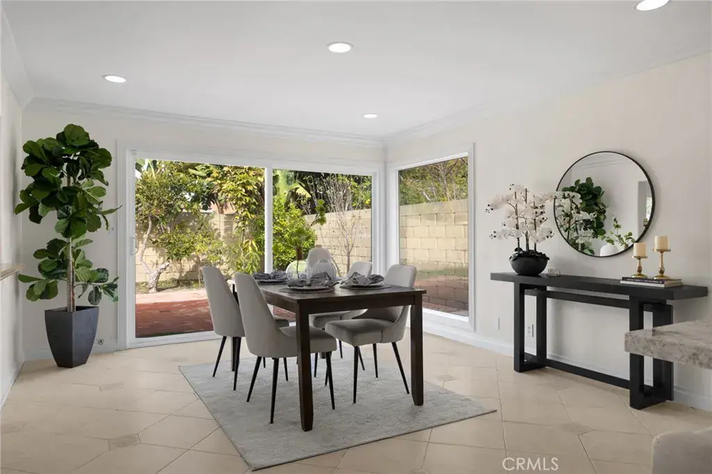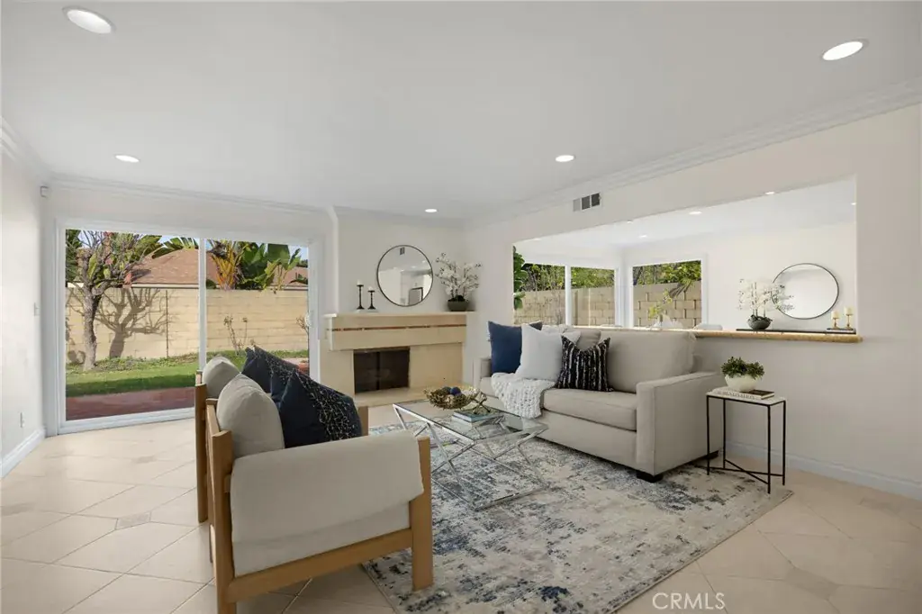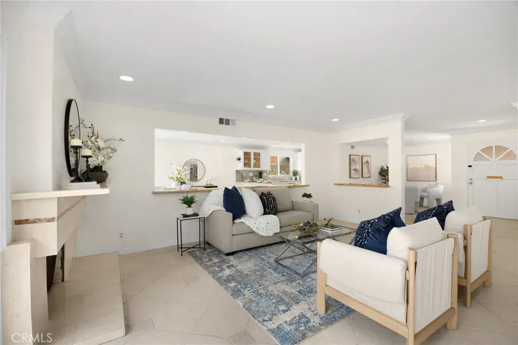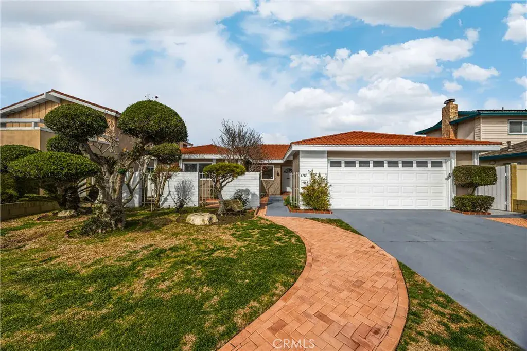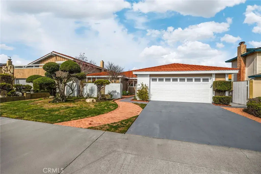 Welcome to this 4-bedroom, 2-bath home in Goldenwest Estates. Upon entering, you’re greeted by a grand living room and adjoining family room offering endless layout possibilities. This expansive space is filled with natural light from two large glass sliders and an oversized window, creating a bright, open feel that truly brings the outdoors in. A formal dining or sitting area sits just off the main living space, adding even more flexibility to the floorplan. The newly remodeled kitchen features white shaker cabinetry, new granite countertops, brand-new refrigerator and stove, and a walk-in pantry. The kitchen bar opens to the family and dining areas with direct access to the backyard—perfect for entertaining. Just off the kitchen is an inside laundry room with direct access to the two-car garage with built-in storage and attic space.The primary suite includes a walk-in closet and a remodeled bathroom with upgraded vanity and walk-in shower. The guest bathroom features dual sinks, a new vanity, and a newly designed tub/shower. Three additional bedrooms are spacious, with one ideal for a home office. The private backyard features new brick pavers and walkway, block wall fencing, and mature fruit trees—ideal for relaxing or hosting gatherings. Additional upgrades include new front yard walkway pavers to the courtyard, fresh interior paint, new A/C, water heater, and full re-piping. Conveniently located close to the beach, top-rated schools, parks, and Bella Terra shopping and dining.