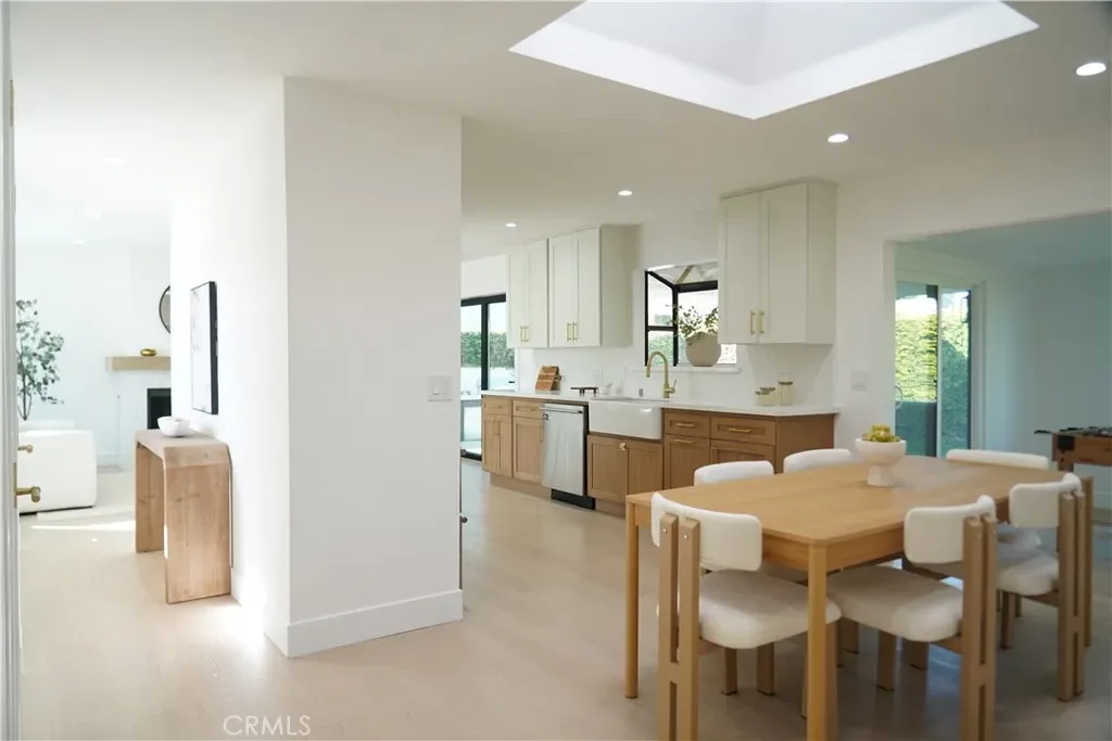 Inside, the home is filled with natural light, enhanced by a skylight in the dining room and an open, airy layout. The modern kitchen showcases brand-new stainless steel appliances, stylish white oak lower cabinets and off-white uppers with brushed gold fixtures with brand new quartz countertops hand picked to tie together the homes aesthetic. Additional upgrades include new luxury vinyl plank flooring throughout, remodeled bathrooms, and a newly added, and fully permitted bonus/flex room that could be used as a family room, gym, kid play area, or even a future 4th bedroom.