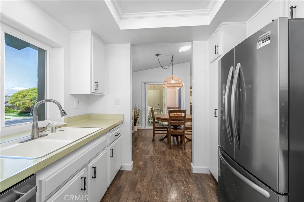 This bright and open end-unit Pacifica floorplan which shares only one common wall, has an OVERSIZED outdoor balcony accessed by two sliding doors which gives this home a beachy indoor-outdoor living feel. The home features newer double paned windows and sliding doors, newer vinyl wood flooring, newer refrigerator, newer dishwasher, newer washer and dryer, newer furnace, and newer water heater. The natural light that bathes this home will uplift anyone’s spirit who walks through the front door. Upon arrival, the outdoor landing is adorned with an array of meticulously curated plants and flowers. Once inside, the cathedral ceilings with skylight just adds to the voluminous feeling of space and freedom this home exudes! The well-appointed kitchen with stainless steel appliances has a window in front of the sink allowing you to look out onto the lush green open spaces and blue skies. The quiet interior location of this condo is situated far from neighboring buildings which affords you an immense sense of privacy! This condo also comes with a private garage with newer aluminum roll up door and remote, which is located right next to the building. Also, there is an ABUNDANCE of additional open parking spaces situated all around the building. If this ALL isn’t enough…the condo comes turnkey furnished (per inventory)! Most importantly, you will be surrounded by friendly neighbors that truly care and look out for each another! Please come and tour this home today and make the DREAM YOUR REALITY!