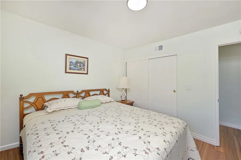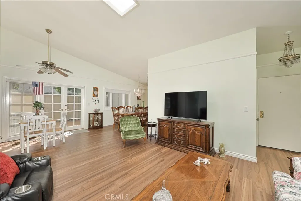 END UNIT… SINGLE STORY… 3 Bedroom, 2 bath home in the Huntington Landmark community! GREAT LOCATION! Interior condo located CLOSE to GARAGE (1 space) and nearby guest parking. Fresh paint and new vinyl plank flooring. SPACIOUS living room with vaulted ceilings, skylight and French doors to the patio. PRIMARY SUITE with a large walk-in closet, skylight, marble countertop, walk-in shower and plenty of storage.