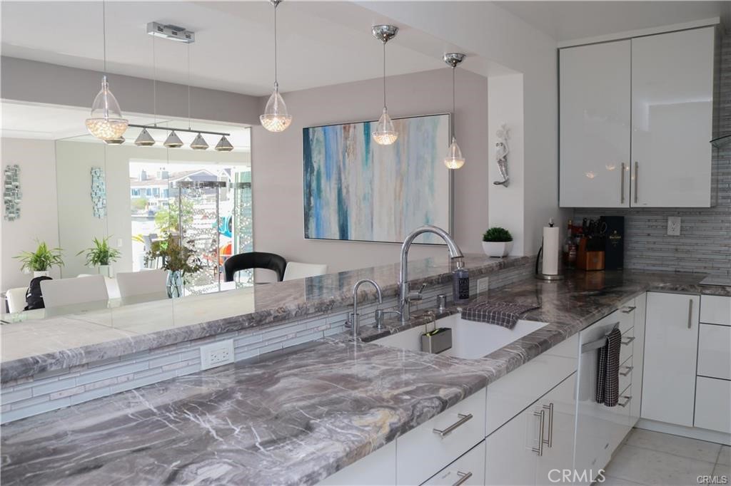 Located in Huntington Harbor’s Seagate community, this home offers peaceful waterfront living in a quiet setting. The property has been updated and remodeled, featuring the primary bedroom, two additional bedrooms, and two bathrooms upstairs. Downstairs, there is one bedroom and one full bathroom, making it ideal for guests or extended family. The home includes many desirable features such as custom stone tile, wood flooring, glass banisters, mirrored wardrobes, and high ceilings. The bright and airy kitchen overlooks the tranquil lagoon, adding to the home’s charm and appeal.