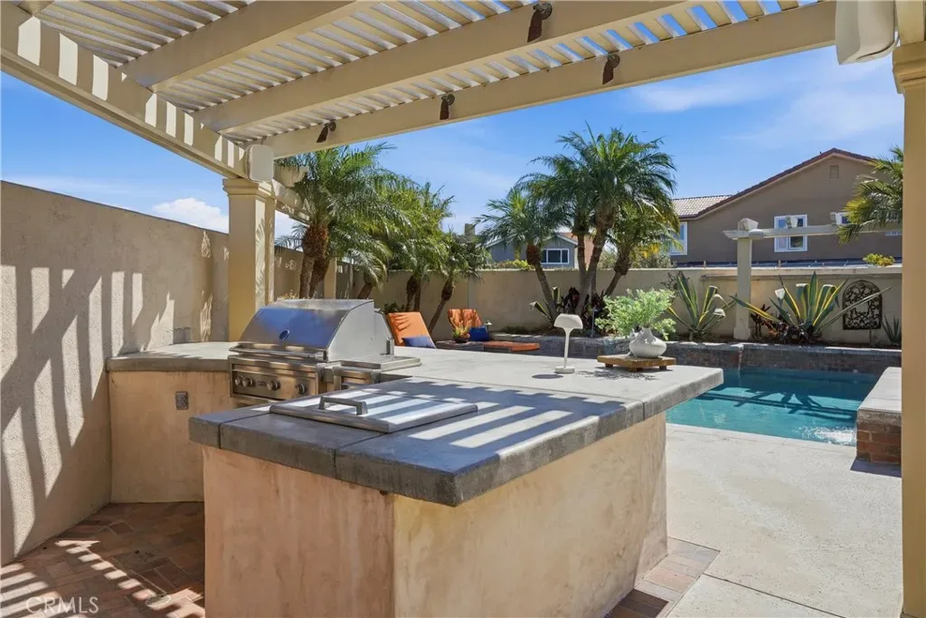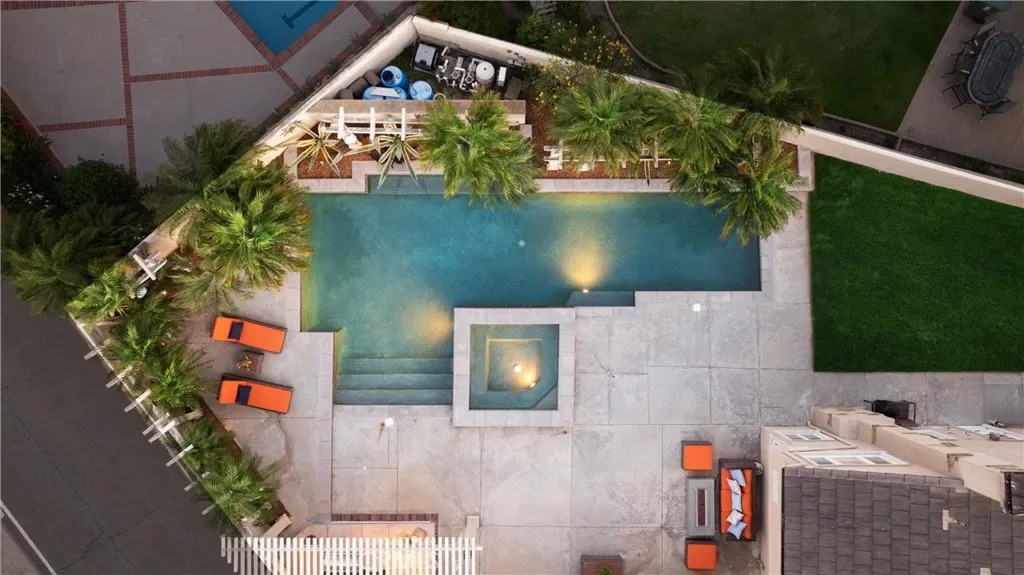 Welcome to a rare luxury opportunity ideally situated on a quiet cul-de-sac steps from the Bolsa Chica Wetlands with direct access to scenic trails leading to the beach. Set on an oversized lot with no neighbors behind, the backyard is designed for ultimate privacy and entertaining, This backyard is like having your own private resort which includes a stunning pool with oversized jacuzzi. built-in BBQ area, patio with bar seating, outdoor speakers, outdoor shower, and a large grass side yard great for kids or pets. There is an additional patio area through the living room french doors, separate from the rest of the backyard. Inside, this home features real wood flooring, abundant natural light enhanced by skylights, and two gas fireplaces creating warm, inviting living spaces. This residence offers the highly sought-after main floor bedroom and full bath, perfect for multigenerational living or guests. The chef’s kitchen is a true centerpiece, showcasing quartz countertops, a large island with bar seating, double ovens, walk-in pantry, pull-out coffee station, wine fridge, and a separate beverage center, blending functionality with modern luxury. Upstairs, the expansive primary suite offers a private retreat with a massive walk-in closet outfitted with custom California Closet cabinetry and a spa-inspired en-suite bath featuring dual vanities. Additional highlights include a dual-zone climate control, separate laundry room with sink and a 3-car garage with epoxy flooring and built-in cabinetry. This is Southern California coastal living at its finest.