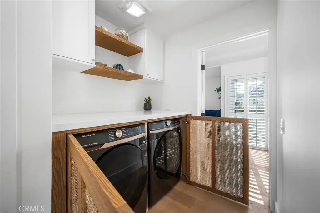 Experience coastal luxury living at its finest in this completely custom-remodeled corner unit, perfectly positioned on a quiet street at the rear of the community for maximum privacy. This beautifully reimagined home features two spacious master suites, two and a half baths, and an open-concept layout designed for modern living. Step inside to discover white oak hardwood floors throughout with a ½-inch soundproofing membrane for enhanced comfort and quiet. The home includes new PEX piping, all-new walls, moldings, doors, outlets, recessed lighting, modern fixtures, ceiling fans, and a contemporary porcelain slab fireplace that anchors the living space. Plantation shutters, dual-pane windows, and sliding glass doors elevate both function and aesthetics. The designer kitchen is an absolute showpiece, featuring all high end Café appliances—including a double oven, dishwasher, refrigerator and beverage center. New upper shelving, a beautifully tiled backsplash, updated hardware, and a convenient pantry complete this stunning culinary space. The primary suite with bonus retreat has been luxuriously updated with new cabinetry, custom closet with built-in features and lighting, a stylish vanity and porcelain slab accent wall in this thoughtfully redesigned bathroom. The secondary bedroom suite is light and bright with vaulted ceilings, walk in- closet, private balcony and en suite full bathroom. The custom upstairs laundry area is equipped with a brand new Samsung washer and dryer, shelving and cabinetry for added convenience. The elegant half bath downstairs also showcases new custom tile, a new sink, mirror, shelving, and modern touches throughout. The attached garage feels like an extension of the home, offering epoxy flooring, built-in shelving, and included storage racks—perfect for organization. Enjoy multiple outdoor spaces with two separate balconies and a perfectly situated patio off the living spaces with views of the beautifully maintained community landscaping. Additional upgrades such as a Nest thermostat, water softener and a new staircase handrail reflect the meticulous level of detail that has gone into every corner of this home. Located just moments from Huntington Harbour, beaches, shopping, and dining, this impeccable residence offers the perfect combination of luxury and coastal ease. Homes with this level of customization and quality rarely become available. Don’t Miss Out!!!!
