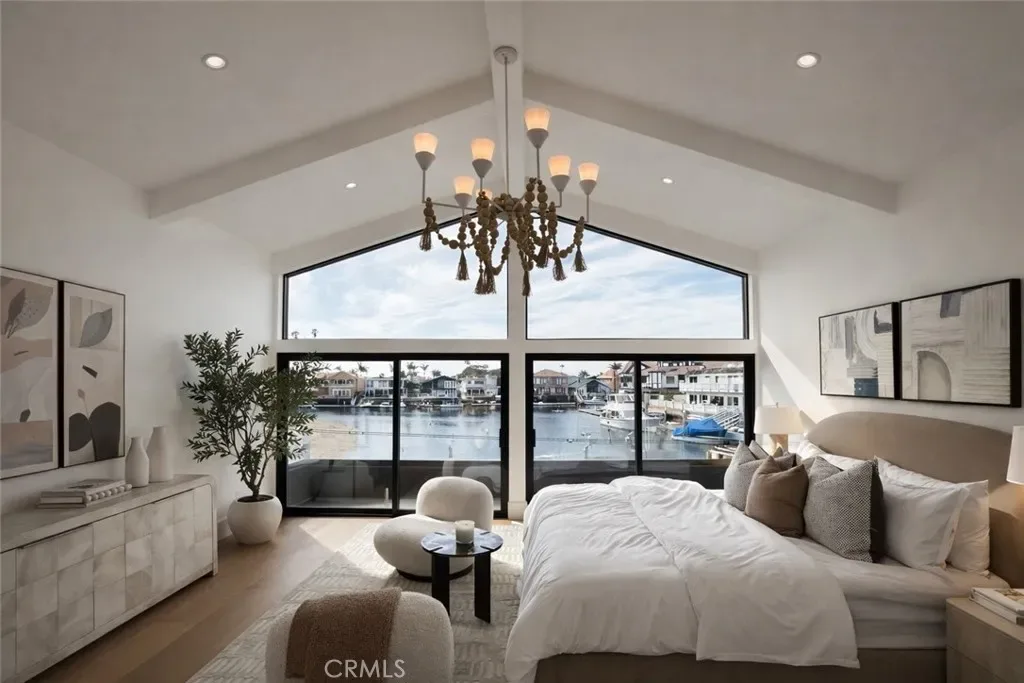 This home showcases a level of craftsmanship and design rarely found in the harbour, delivering a bespoke, estate-quality living experience. A privately gated entry welcomes you through a charming courtyard and Dutch front door into a light-filled residence defined by soaring vaulted ceilings, exposed beams, and walls of glass framing tranquil water views. The entire waterfront-facing wall is composed of expansive pocket sliding doors that disappear completely, creating a seamless indoor-outdoor environment ideal for elevated entertaining and effortless coastal living.
