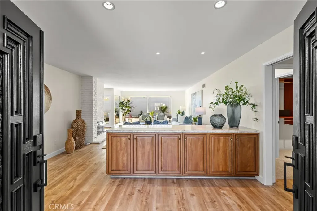 Step into coastal luxury at 4232 Calhoun Drive, a highly upgraded SINGLE-LEVEL home surrounded by the water, marinas and yachts of Huntington Harbour. This reimagined 3 bedroom, 2 bath residence offers approximately 2,121 sq ft of refined living space, featuring raised ceilings in the kitchen, dining and living areas that create an airy, open-concept great room ideal for entertaining. Thoughtful designer finishes include custom luxury vinyl flooring with extra padding, dual-glazed windows and sliders, low-voltage LED lighting and a striking upgraded dual fireplace that anchors the main living spaces. The remodeled kitchen showcases a large island, high end cabinetry and built in appliances while the expanded main bedroom retreat boasts a spa-inspired bath with a multi-jetted tub, oversized shower and generous walk-in closet.