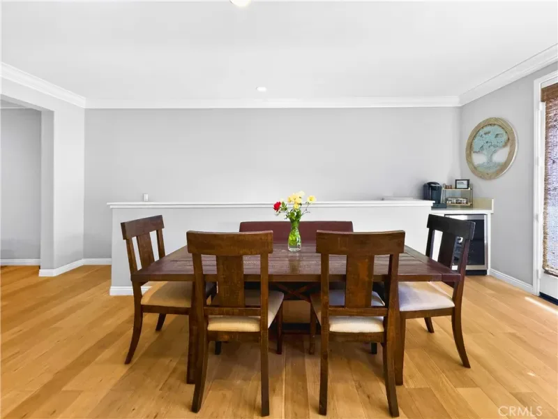 Welcome to 16901 Airport Circle unit 107 in desirable Coastal Walk community in Huntington Beach.The year around weather can’t be beat anywhere. The close proximity to sandy beaches, meadowlark 18 hole golf course, shops and activities at the Huntington Beach pier and across the street from the neighborhood grocery store makes this home very special. This beautiful tri level townhouse has many upgrades including wood flooring, plantation shutters, recessed lighting and crown moulding. As you enter the house from the front porch you have your office with a half bath, wood flooring and crown moulding. Going up the wooden stairs to the second level is the main living area with a large living room with wood floors, crown moulding, a custom bookcase with cabinetry, a half bath and ceiling lighting. leaving the dining room you will find dining area in a large kitchen with wood floors and crown moulding. The kitchen features a walk-in pantry, upgraded counters, gas stove, microwave and dishwasher. There are 2 windows and a glass door leading out to the outdoor patio that offers plenty of light and pleasant ocean breezes. Going up the carpeted stairs to the third level brings you to a carpeted hallway with a full bathroon and a laundry room with a washer and dryer. At the west end of the hallway is the primary bedroom with carpet, crown moulding and a walk in closet. It features an upgraded full bathroom with a walk in shower. At the other end of hallway are 2 bedrooms with carpet and crown moulding.