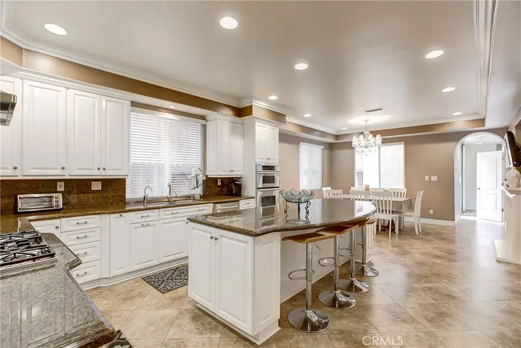 Entertain guests in the two splendid living rooms situated on the ground and second floors. The second floor room, adorned with high ceilings and natural light, is the definition of elegance. The kitchen is a chef’s dream, complete with a kitchen island, steel appliances, marble countertops, a decorative backsplash, and wooden cabinets illuminated with recessed lighting.