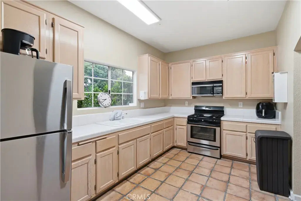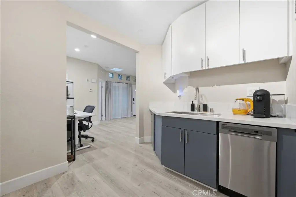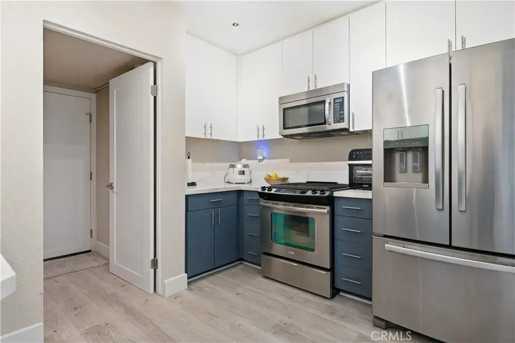 This One Will Not Last — A MUST SEE! Single Level • Fully Remodeled • Private Corner Location This beautifully remodeled single-level home is tucked away in a private corner of a fantastic community. Finished in soft neutral tones of grey and white, this charming residence features 1 Bedroom, 1 Bathroom, a Laundry Room, and an Oversized Attached 1-Car Garage plus assigned parking space. As you enter, you’re greeted by luxury grey vinyl plank flooring throughout, complemented by grey walls and crisp 5″ white baseboards. The living room offers a beautifully redesigned fireplace with decorative white tile and an upgraded ceiling fan. The rooms are open, large, and spacious. The updated kitchen features plenty of cabinetry with adjustable shelving, white quartz countertops with soft grey veining, stainless steel appliances, a large stainless farmhouse sink, French-door refrigerator with in-door water and ice, gas range, microwave, and dishwasher—everything needed for a highly functional and stylish kitchen.