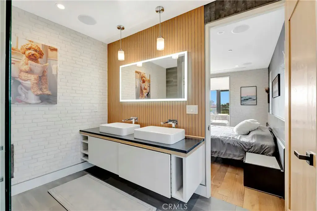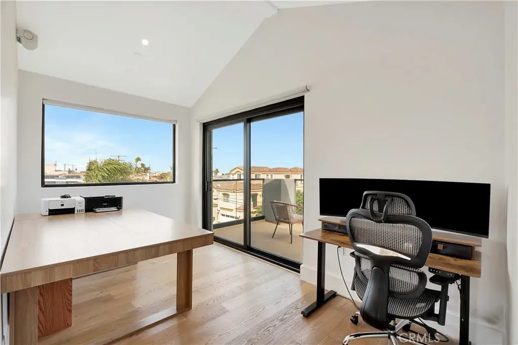 An exceptional tri-level home on a sunny, oversized corner lot, offering a prime location just minutes from the beach and Downtown Huntington Beach. Completed in 2021, this sophisticated residence spans over 3,300 square feet of thoughtfully designed living space and features a private elevator connecting all three levels. Bathed in natural light from expansive windows, the open-concept main level exudes warmth and elegance, enhanced by recessed lighting, high ceilings, a sleek cozy fireplace with integrated surround sound and oversized bi-fold patio doors open to an exceptional outdoor sanctuary, creating an ideal setting for indoor/outdoor year-round entertaining. The dining area, featuring a built-in wine display, seamlessly flows into the chef’s kitchen, appointed with premium Wolf stainless steel appliances, a spacious walk-in pantry, and a center preparation island with bar seating. The second level offers a versatile media or bonus room (easily converted to 4th bedroom), alongside two large bedrooms, including a primary suite designed for ultimate retreat living. The 3rd level features a second primary suite with a dedicated seating area with a built-in desk, a spa-inspired bath with dual vanities, soaking tub, walk-in shower, and a custom-designed walk-in closet. Each additional bedroom offers generous proportions and refined finishes. As well as a office perfect for a lounge, home office, or 5th bedroom, with an attached half bath, with direct access to expansive rooftop decks that elevate the indoor-outdoor experience. The 2 car garage is fully finished with epoxy flooring and built-in storage. Additional appointments include solar panels, 1st & 3rd floor ductless HVAC, 2nd floor individual climate control per room, automated blinds, tinted windows, a Savant smart home system, and Ring security cameras. This residence masterfully combines modern coastal sophistication, convenience, and refined luxury living in one unparalleled package all just a short walk to the beach, downtown Huntington Beach, the pier, Pacific City and more!