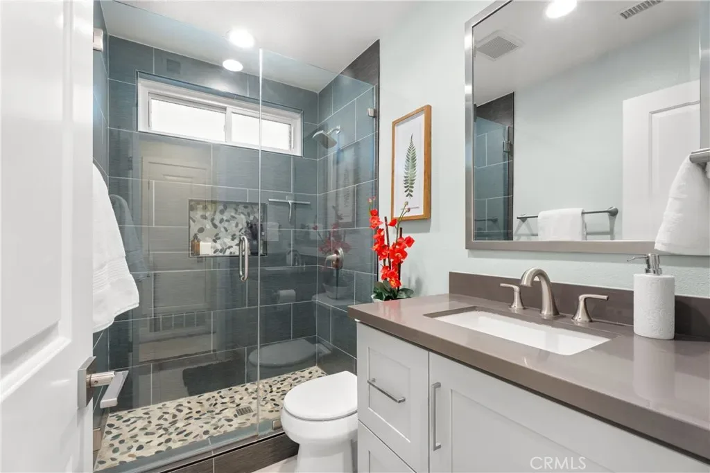 Energy-efficient windows, central heating and cooling, and top-of-the-line security systems ensure peace of mind and year-round comfort. 2-Car attached garage with a custom African Mahogany garage door. Garage has two closets, drywall, custom lighting, quartz counters, New cabinets, Sink, & private access to storage above ceiling. Private 40 foot RV access parking with custom gate. Top rated private and public schools. Located just moments from the pristine beaches of Huntington Beach. Discover the epitome of luxury living where every day feels like a vacation!