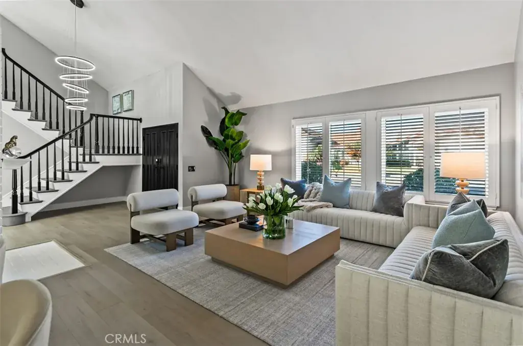 9882 Kings Canyon Pl – An exquisitely reimagined Park Huntington Catalina model nestled in the heart of South Huntington Beach. This luxurious 4-bedroom, 3-bath residence plus expansive bonus/entertainment room exudes coastal sophistication from the moment you arrive, with designer hardscape, leaded-glass double entry doors, and dramatic soaring ceilings bathed in natural light.