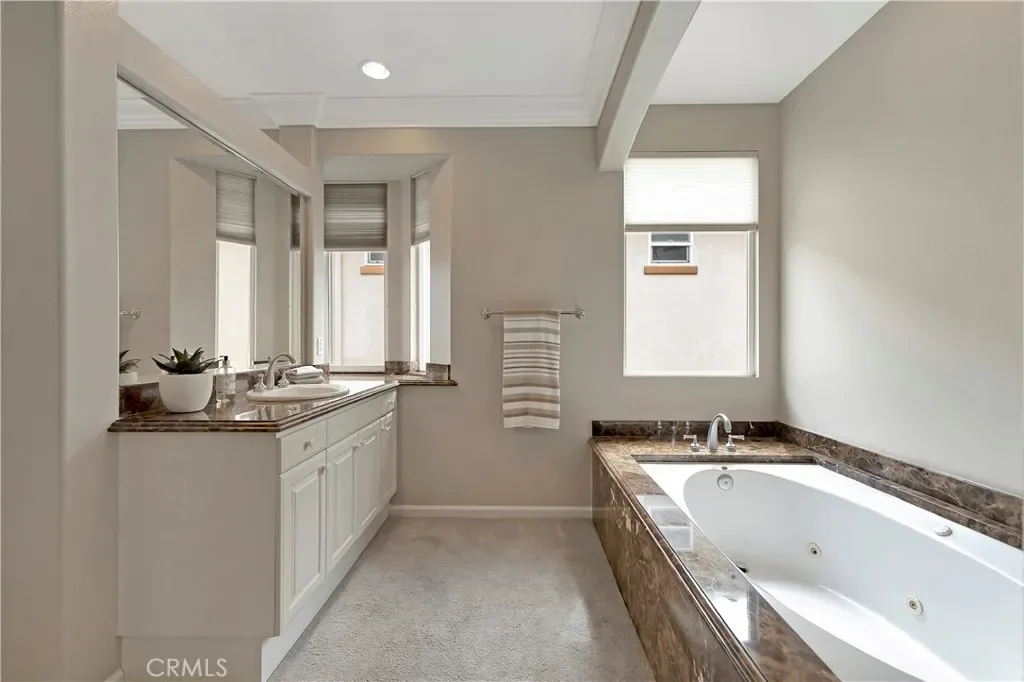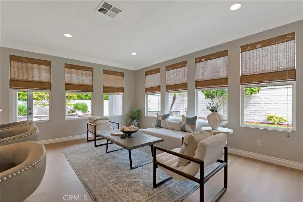 Fabulous family home in the highly sought-after gated community of Peninsula Park in the SeaCliff area of Huntington Beach in an interior location and within walking distance to the award-winning SeaCliff Elementary school, several parks, dining, shopping, and entertainment! Almost 3,000 square feet of gracious living space with an open concept floorplan. 4 bedrooms including one down + loft/bonus room (can easily be converted to bedroom 5), 3 full baths. Meticulously maintained and fabulously upgraded with newer hard surface flooring, newer neutral paint, crown moulding, plantation shutters, recessed lighting, soaring ceilings and much more! Entertainer’s dream kitchen that opens to family room with granite counters, upgraded stainless steel appliances, center prep island, breakfast bar, walk-in pantry and sunny breakfast nook. Formal living room/dining room combo with soaring ceilings. Spacious secondary bedrooms with built-in writing desks and private sinks that lead to a jack and jill bath. Grand primary suite with balcony and large primary bath with ample closet space, dual sinks, jetted soaking tub and separate shower. Wonderful opportunity!