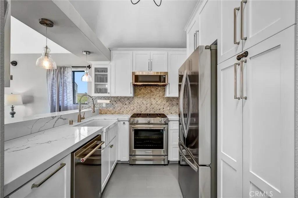 A new & exceptional offering, all you have been seeking, is found in this stunning & idealic Ca. coastal beachside home, less than one mile to surf, sand, all that Ca. beach side living offers. Bolsa Chica State Beach & Bolsa Chica Wetlands w/miles of scenic hiking & biking trails all within a mile. Pointe Surfside is a highly sought gated community of only 102 units. This incredible 3rd level end unit location, offers Penthouse vibes along with vaulted ceilings, an open concept floorplan & a west facing wrap around balcony. Year round sunset views will be your’s. Convenience is offered in your private garage, just a few steps to the elevator, upon entering the 3rd floor, a direct few steps finds you entering a private access into this stunning home. Once inside, the 3rd level location proves it’s superior location, un-obstrusted views. Single level living with NO STAIRS, no-one above you and a dynamic kitchen graced with dramatic quartz countertops, soft close drawers & doors, 26” deep cabinetry, KitchenAid range, stainless appliances & a side/by/side oversize refrigerator, solid wood custom cabinetry, glass front display cabinets, farmhouse sink & many custom useful amenities. Enjoyable times are to be had at the breakfast bar which will provide hours of enjoyable family or guest conversations. Dramatic chandeliers & recessed lighting highlight tasteful features found here. Versatility is a valued plus, whether family or individual living, this home provides all you may desire. Pristine newly refinished flooring, custom baseboards & crown molding, in-home full size laundry closet &designer touches thru-out include new hardwood doors, baths w/quartz counters, designer interior paint & more. Please step out to the wrap-around deck & do not miss to the left side, the enormous storage room with lockable door. Opportunity often knocks only once, you will not want to miss this spectacular home, full of well planned living space, views, truly a place you will want to call “home” Community amenities are incredible, lovely meandering streams, lush vegetation, all well lit at night, resort pool, hot tub, tennis courts, an enormous clubhouse. Electronic gate access at entrance, building “C” is first building as you enter. Plentiful guest parking.