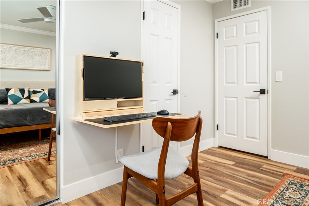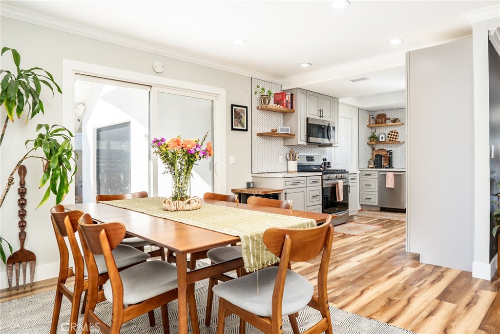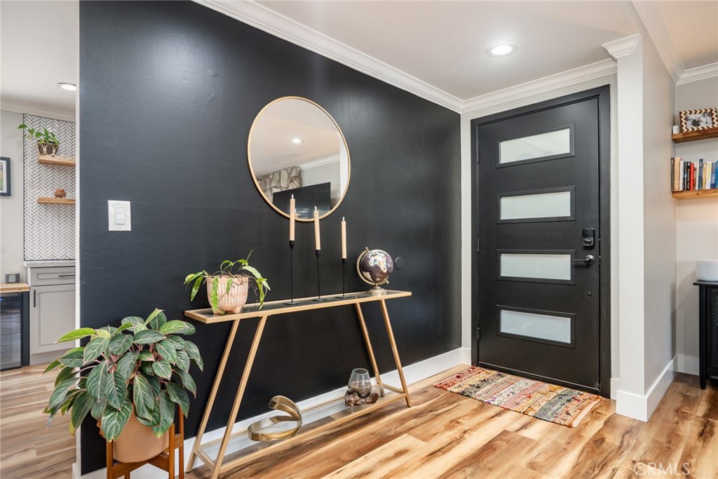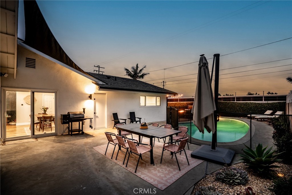 From the moment you arrive, the crisp architectural lines, fresh exterior finishes and thoughtfully designed no-maintenance drought-tolerant landscaping create standout curb appeal. A private front courtyard and custom entry set a warm, contemporary tone that carries throughout the home. Inside, the space feels clean, bright and effortlessly cohesive. Wide-plank waterproof flooring, fresh paint, modern finishes and ambient lighting create a calm, elevated atmosphere, while smart home features allow seamless control of lighting, climate, security, garage access and more. The remodeled kitchen blends style and function with quartz surfaces, updated cabinetry and open sightlines to the main living space, where a sleek Ice Glass fireplace adds a modern focal point. Custom storage solutions throughout reflect the home’s thoughtful design. The backyard is designed for everyday enjoyment and easy entertaining. Featuring a sparkling private pool, low to no-maintenance turf, drought-conscious landscaping and integrated lighting and sound create a private outdoor retreat that feels both relaxed and refined. Even the garage has been intentionally upgraded, offering a polished, highly functional space with custom built-in cabinetry, workspace flexibility, EV charging capability and valuable additional storage. Effortless smart home controls and a low to no-maintenance exterior allows you more time spent enjoying your home and less time working on it.