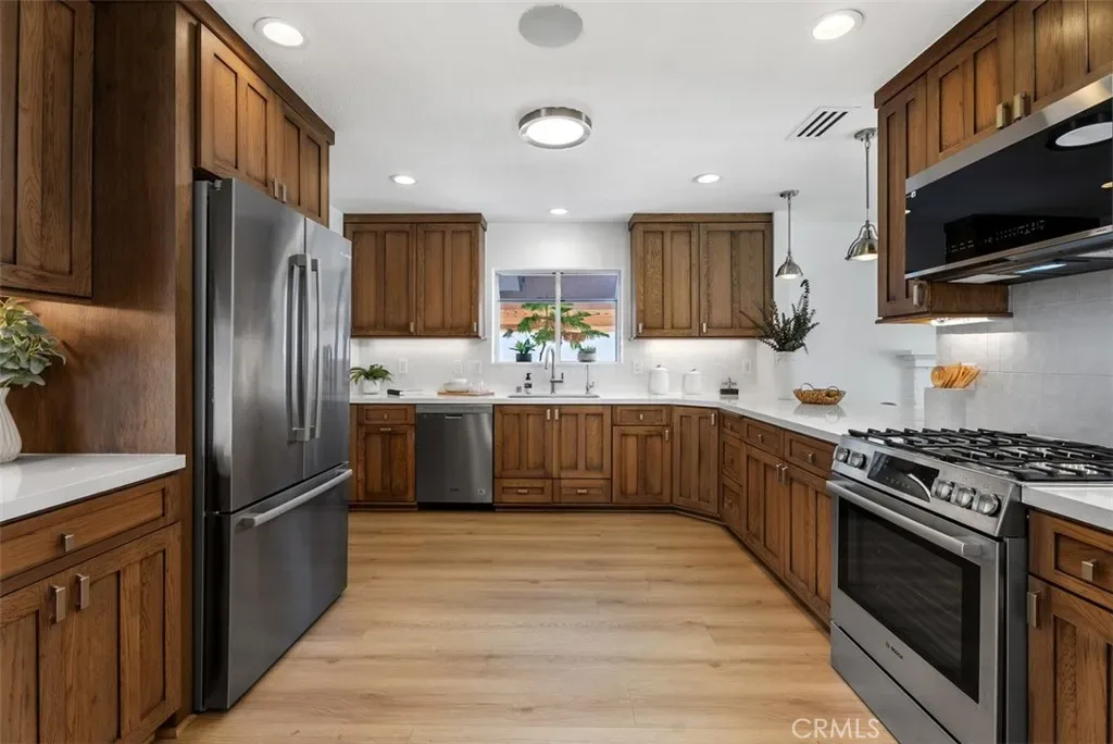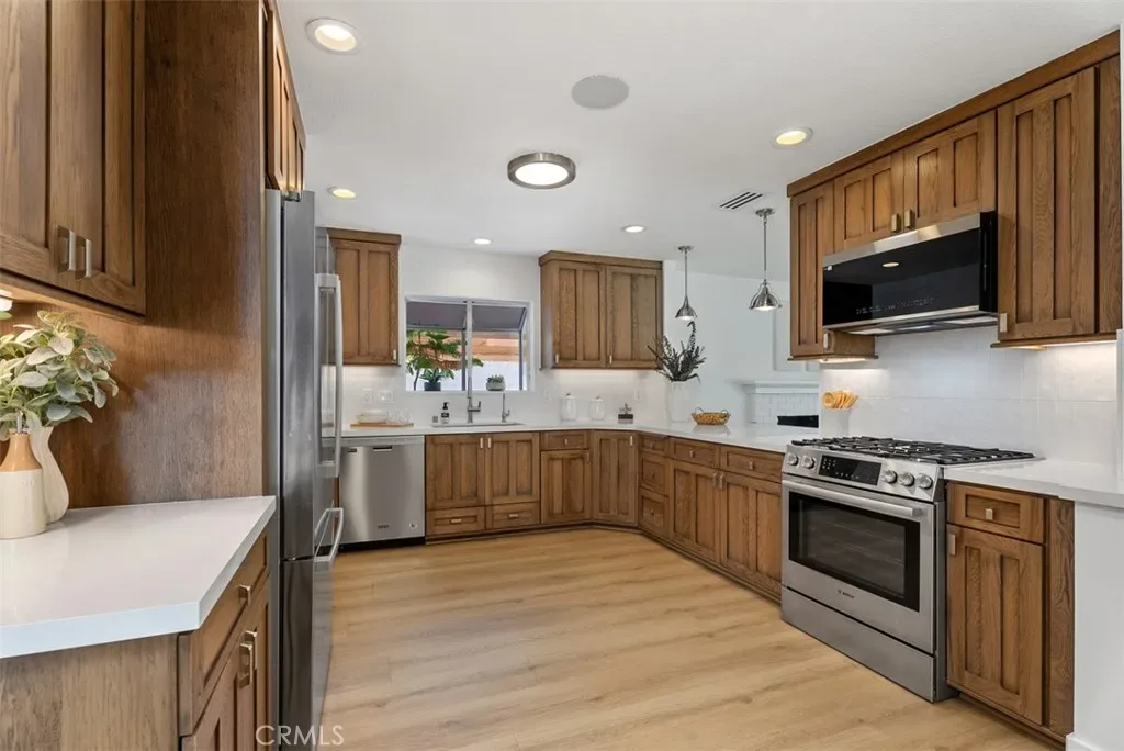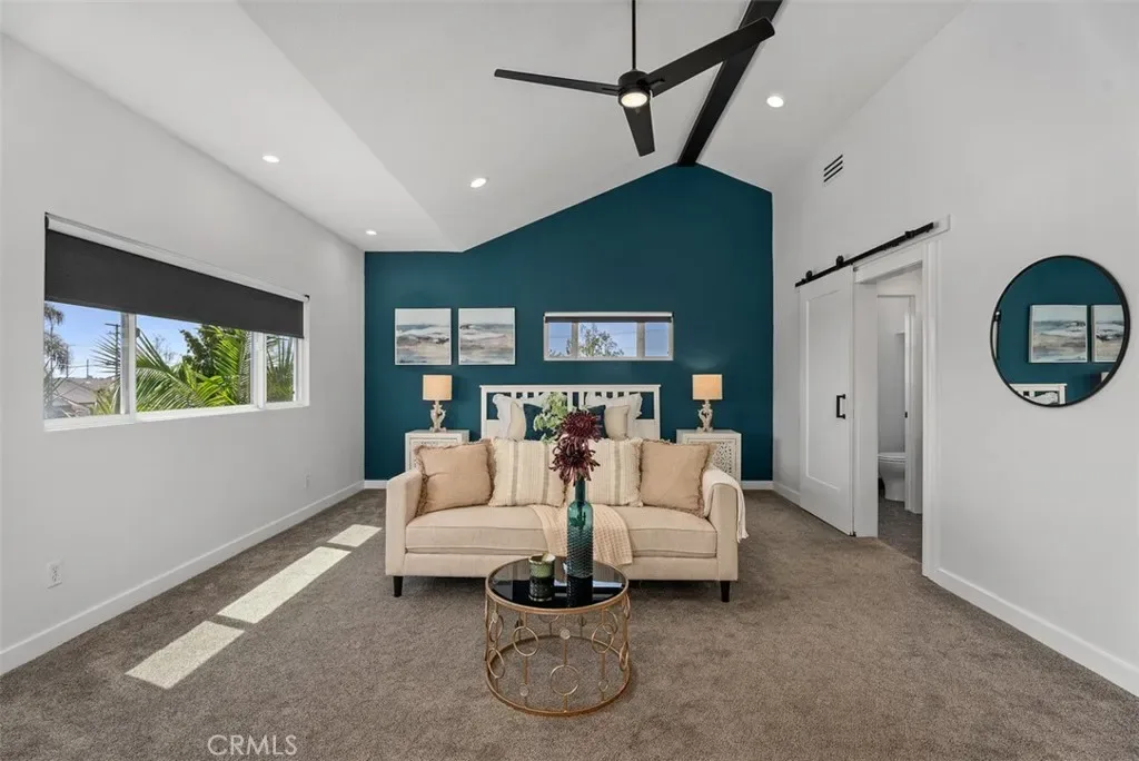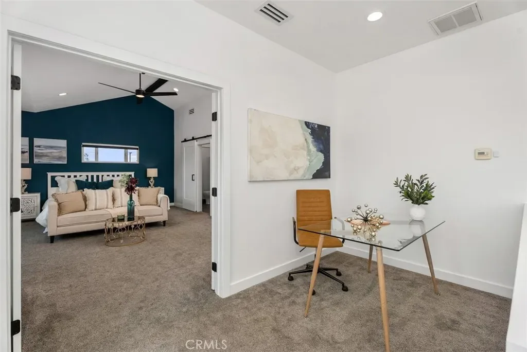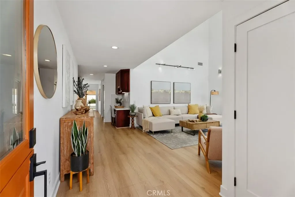 Beautifully expanded to approximately 2,001 sq ft, this exceptional Huntington Beach home features a fully permitted addition creating a private upstairs primary suite retreat with a custom walk-in closet and a spa-inspired ensuite bath with designer tile, stone countertops, and dual sinks. Thoughtfully designed by a licensed general contractor and premier builder, the home reflects quality craftsmanship and long-term functionality. The entry showcases soaring two-story ceilings, abundant natural light, and new flooring (2026). The upgraded kitchen offers quartz countertops, custom cabinetry, tile backsplash, stainless steel appliances, and recessed lighting. Downstairs includes three additional bedrooms and an updated dual-sink bathroom. Recent upgrades include new HVAC and ducting (2024), tankless water heater (2024), whole-house filtration system, repipe (2016), and newer roof. The finished garage features epoxy flooring, upgraded electrical, and a built-in laundry center. Expanded driveway accommodates 3 cars, boat, or RV. The private backyard is designed for low maintenance with turf, custom hardscape, block walls, outdoor shower, spa area, gas lines, smart lighting, and speakers. A rare opportunity where the quality of expansion, systems, and upgrades would be difficult to replicate at today’s cost.