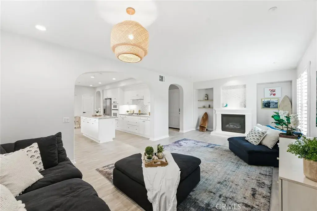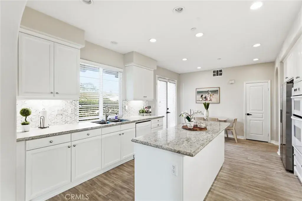 Stunning SeaCove in the exclusive Waterfront Community, Plan 3, ideally located just a few steps from the blue Pacific Ocean in the heart of Huntington Beach—Surf City USA. Resort Living at it’s finest in this exquisite home, boasts a superb location, quietly nestled at the back of this exclusive, gated paradise community, this rare and highly sought-after floorplan overlooks a tranquil, beautifully landscaped park with tropical greenery and charming benches to sit and just relax and take in the view. Rarely on the market, this elegant residence offers 3 bedrooms, 2.5 baths, and approximately 1,845 square feet of refined living space, featuring two bedrooms downstairs and a luxurious upstairs primary suite complete with a retreat area and walk-in closet. The open-concept design is enhanced by volume ceilings and upscale finishes throughout, including arched passageways, dual-pane windows, French doors with disappearing screens, plantation shutters, high-end waterproof wood-vinyl flooring, raised-panel interior doors, recessed lighting, and dual-zone central A/C. The sophisticated living room with custom fireplace, media niches, and formal dining area flows seamlessly into a true chef’s kitchen showcasing granite countertops, designer tile backsplash, a large center island, custom white shaker cabinetry, walk-in pantry, white appliances, stainless sinks, and a sun-filled casual dining area with French doors opening to a very private, serene covered patio with paver decking—perfectly positioned to overlook lush natural gardens and a pathway leading to the park. The main level also features an upgraded powder room, a full bath with porcelain tile flooring and walk-in shower with designer tile surround and clear glass enclosure, a spacious storage closet, and an inside laundry room with direct access to the two-car garage featuring epoxy flooring and overhead storage. Upstairs, the primary suite is a true sanctuary with a spa-inspired bathroom offering granite countertops, dual sinks, a romantic soaking tub with travertine surround, porcelain tile flooring, and a separate travertine walk-in shower with sitting bench. Live where others vacation year round in this resort-style beach-close community, ideally situated across from the beach behind the Hilton and Hyatt resorts, and offering its own pool, spa, and BBQ area—just moments from the pier, downtown Huntington Beach, fine dining, and the Pacific City outdoor mall. Coastal living at its finest!!