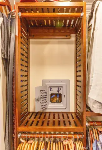 The spa-style bath mirrors that finish level: marble counters, walk-in shower with sliding door, LED lighting and upgraded ventilation. Additional features: stacked washer/dryer unit with mahogany-shelved closet, brand-new luxury entry door, crown molding & exposed mahogany rafters, plantation shutters with oversized slats, new skylight with repainted tunnel, and smart three-way light-switch layout + extra outlets for convenience.