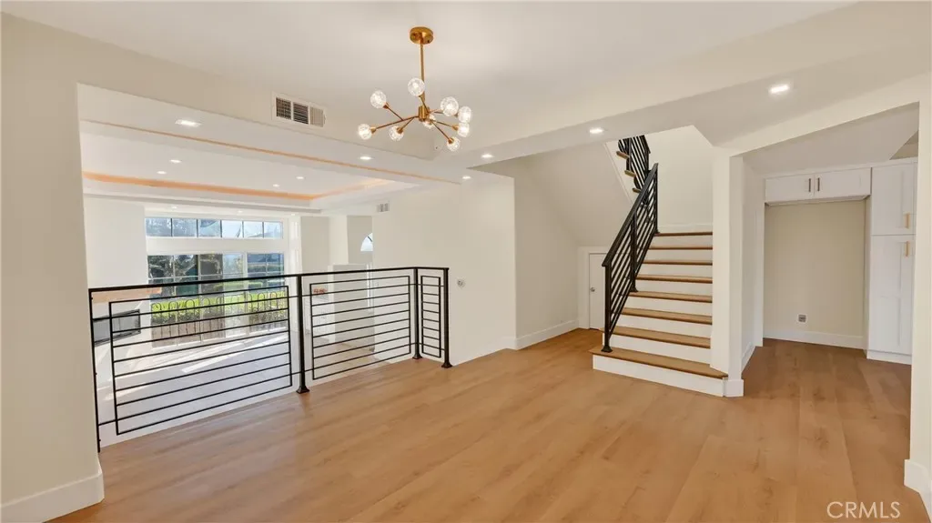 with high-end finishes throughout, the home features smooth walls, contemporary ceiling lighting, and
