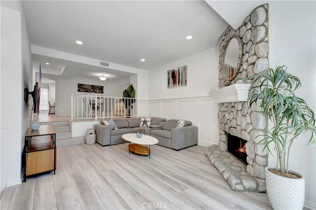 Light-filled and beautifully positioned near the ocean, this home enjoys a prime interior location with greenbelt views in the coveted SeaCliff on the Greens community, offering a serene coastal lifestyle moments from the beach. Upgrades include recessed lighting, upgraded hard surface flooring, brand new AC, custom paint, custom light fixtures, plantation shutters, updated windows and sliders and so much more. The living room showcases a floor-to-ceiling stone fireplace and custom windows & slider. Just off the kitchen, a cozy family room with a built-in desk opens to a partially enclosed balcony for added space (this property has one of only 2 sunrooms in the entire community). Gourmet kitchen with stunning waterfall quartz counters, white shaker cabinets, breakfast bar, and stainless steel appliances. Grand primary suite with vaulted ceilings, dual walk-in closets with organizers & view balcony. The primary bath has been tastefully remodeled with shaker cabinets, quartz counters, dual sinks, a spa tub, and a walk-in shower. Ample size secondary bedrooms and conveniently located upstairs laundry area. Direct garage access with tons of storage. Beautiful sunny front patio with newly installed pavers and custom landscaping lighting facing the greenbelt. 2-minute walk to several community pools, spas, and clubhouse. Steps to the beach, the trails at the Bolsa Chica Wetlands, fabulous parks and located within the award-winning SeaCliff Elementary School. A truly unique community!