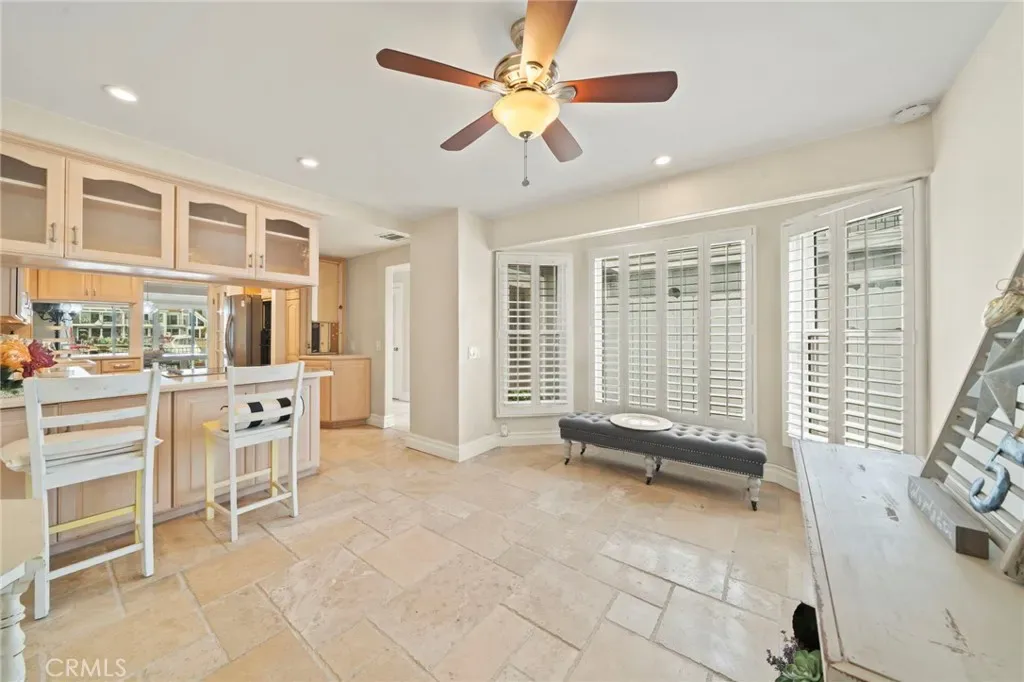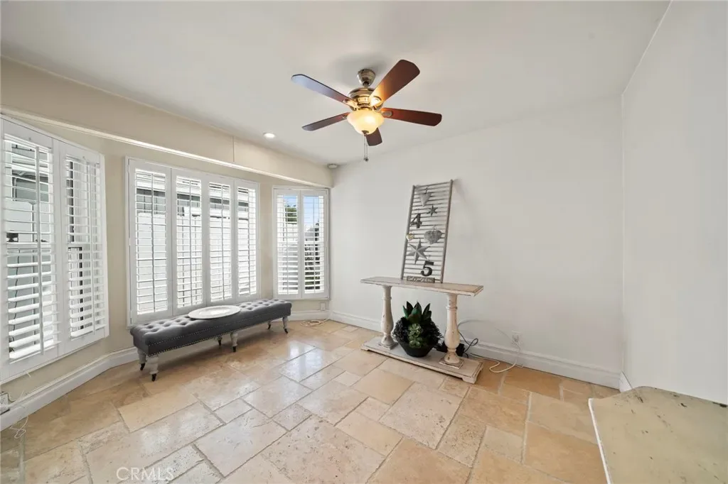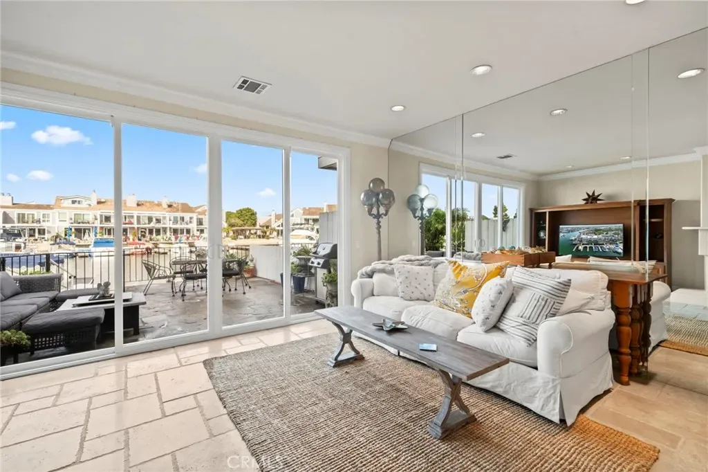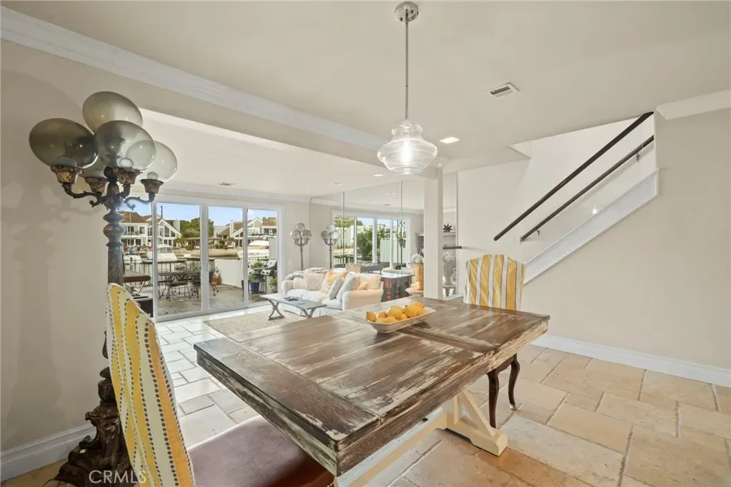 This desirable three-bedroom, two-and-a-half-bath residence is filled with natural light and features a formal living and dining room, fireplace, dedicated office space, and a remodeled kitchen. Travertine flooring enhances the main level, complemented by recessed lighting and elegant crown moldings throughout. Water views from practically every window in the house!