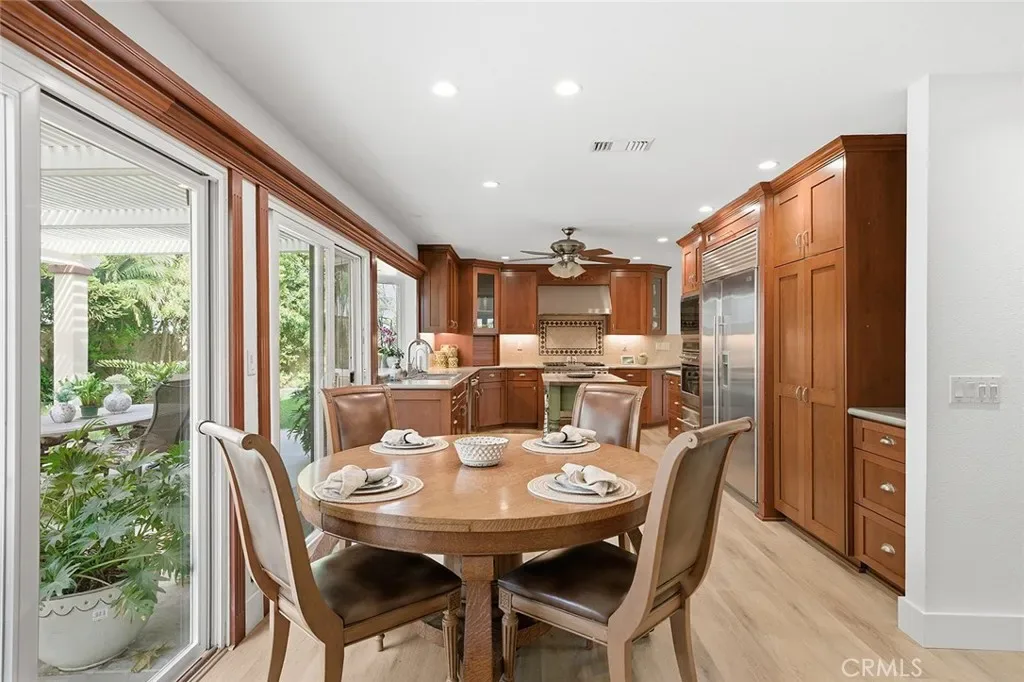 The main home has been thoughtfully upgraded throughout, showcasing newer luxury vinyl flooring, custom paint, recessed lighting, a 200-amp electrical panel, and solar with a low fixed monthly cost. The chef’s kitchen is both functional and impressive, featuring a Wolf range, additional Wolf oven and microwave combo, Sub-Zero refrigerator, under-cabinet lighting, and seamless flow into the family room with custom built-ins.