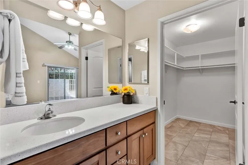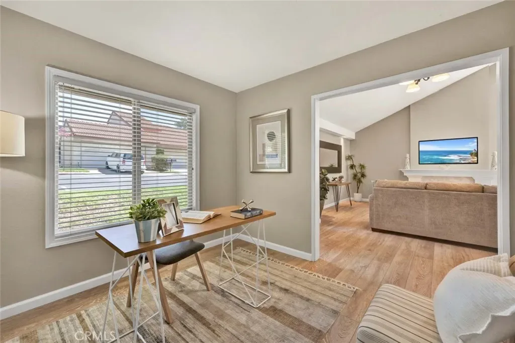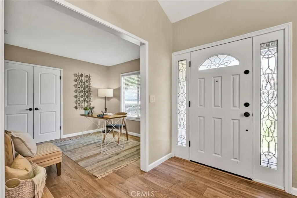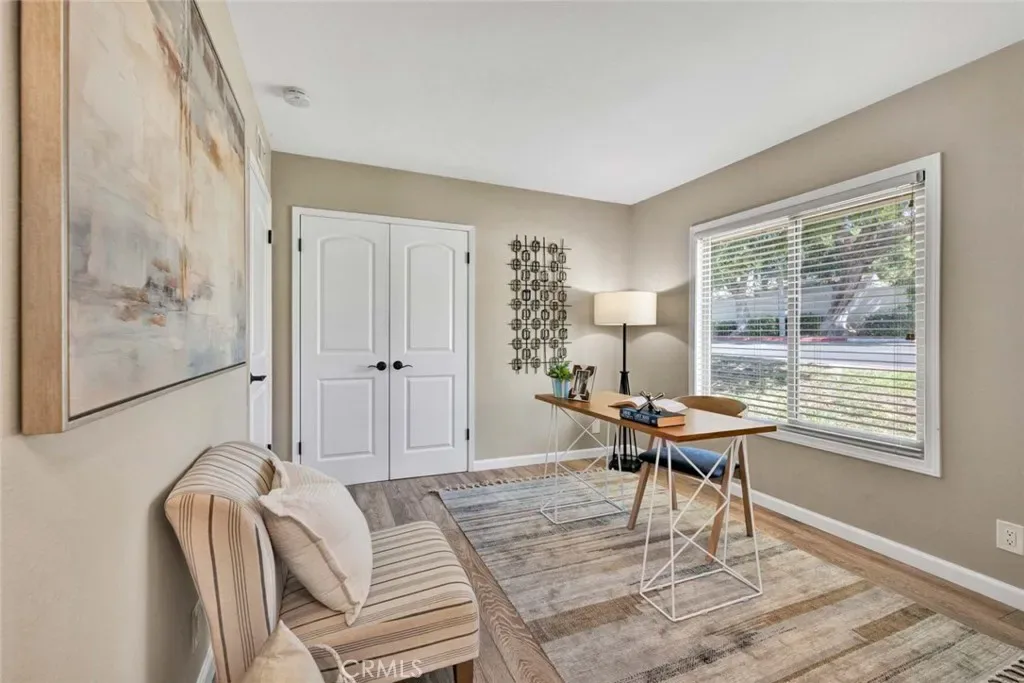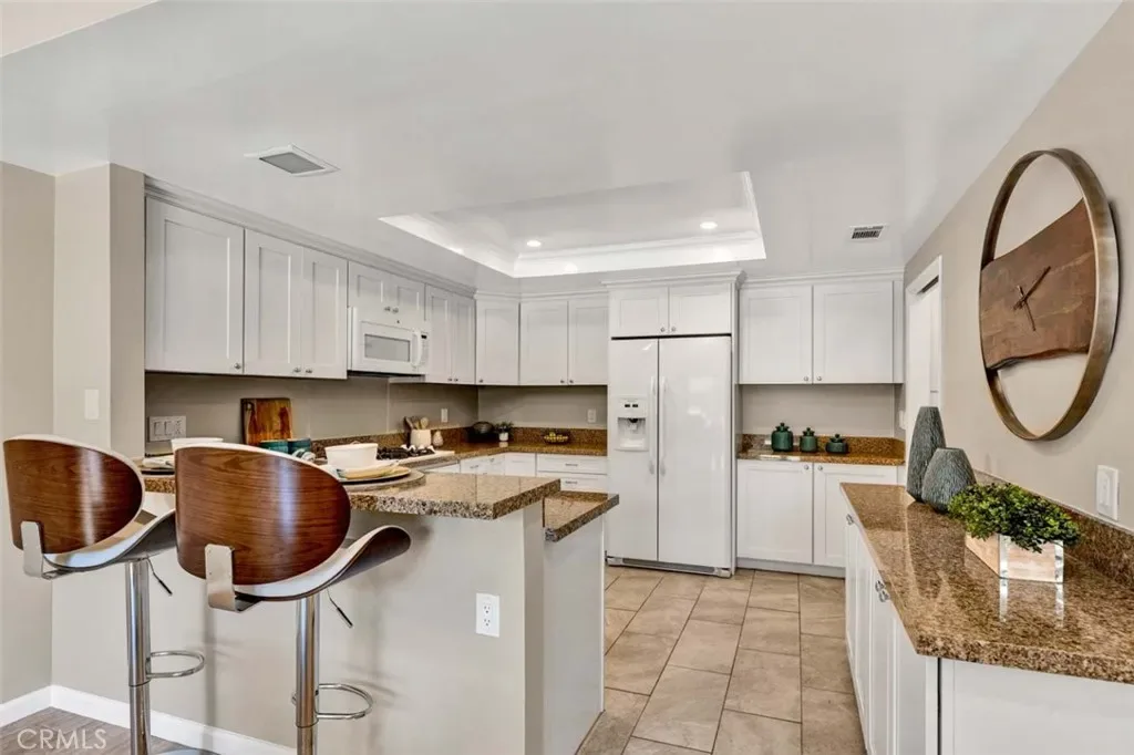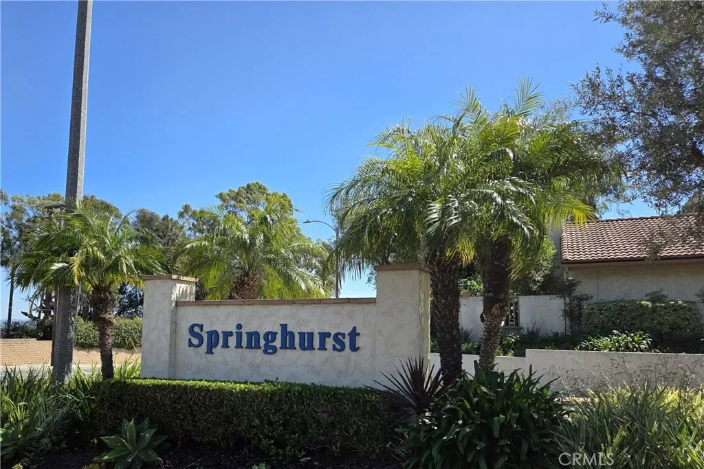 Tastefully updated and lovingly maintained, this 3 bedroom, 2 bathroom single story end unit home in the Springhurst townhomes may be the one you’ve been waiting for! The mood is subtle elegance from the 6 panel front door trimmed with leaded glass windows that leads to a living room flooded with natural light. The living room features a cathedral beamed ceiling, marble trimmed fireplace, recessed lighting, and laminate floors. It flows to the dining room and remodeled kitchen, with a breakfast bar, walk in pantry, granite counters, loads of cabinets, a gas stovetop, microwave, dishwasher, refrigerator, recessed lighting, and a buffet with additional storage that extends the length of the wall. Sliding doors exit to the main patio space, with planters to exercise your green thumb. The doors of the 3rd bedroom have been removed to form an alcove from the living room, perfect for an office, toy room or music area. The full bathroom has been beautifully remodeled. The primary suite is a comfortable size and boasts a large shower, a vanity area, a spacious walk-in closet, and direct access to the garage where the laundry facilities are. The primary suite and remaining bedroom open to a second patio. The 2-car garage has an epoxy floor, built in cabinetry, and a pull down ladder to the attic storage. Other features include central air conditioning, dual paned windows and a newer water heater. Springhurst HOA offers a pool, spa, clubhouse, RV parking and a spacious green park on a bluff.
