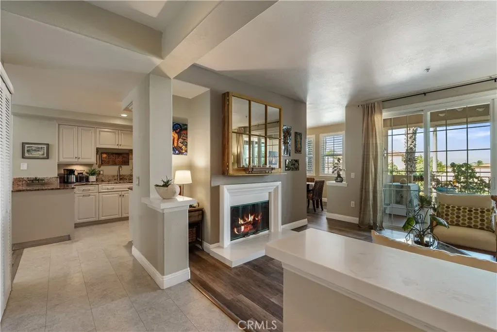 Just up the street from the Bolsa Chica Wetlands, Huntington Harbour, and the coastline sits this beautifully designed 2 bedroom, 2 bath Huntington Beach villa. As you step inside the welcoming entryway, you are greeted by a large living room, filled with abundant natural light and anchored by a cozy fireplace. Neutral vinyl wood flooring flows seamlessly throughout, creating a comfortable, easygoing atmosphere suited for quiet evenings or lively gatherings. The large, remodeled designer kitchen blends style with everyday function, offering high-end cabinetry, granite countertops, stainless steel appliances, and a spacious pantry with pull-out drawers that make staying organized feel effortless. The space invites both casual mornings and more thoughtful meal preparation.
