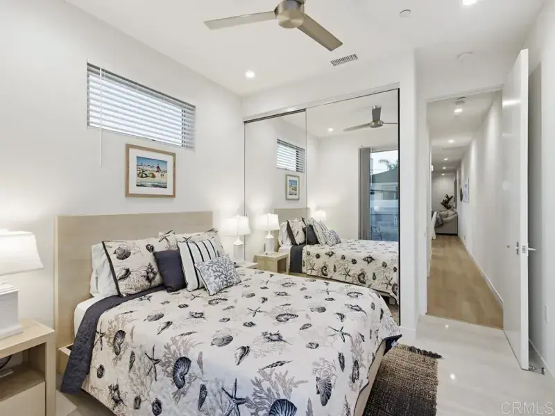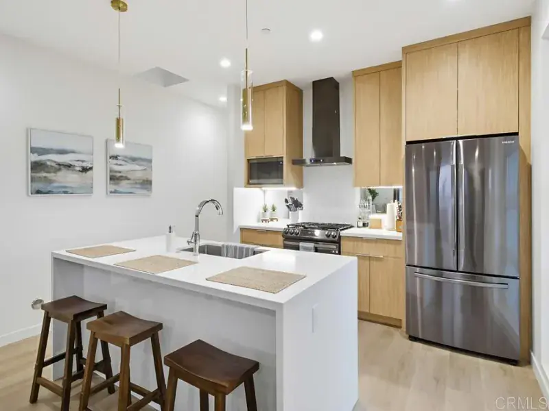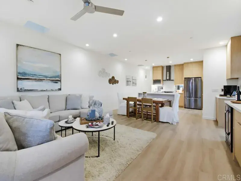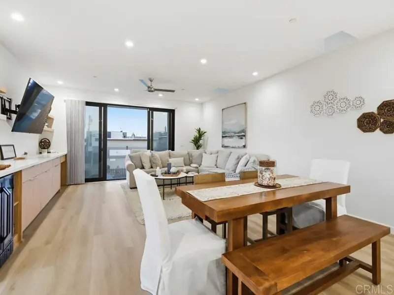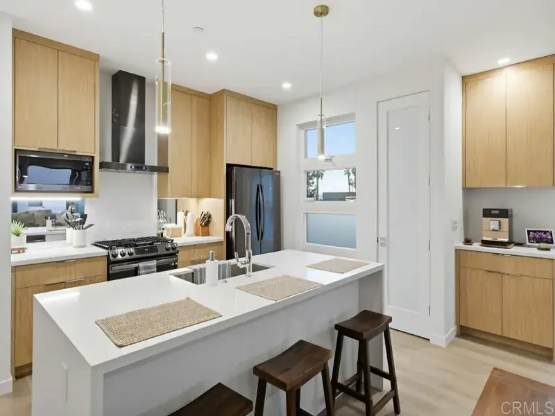 Discover the epitome of modern coastal living with this stunning 3-bedroom, 3-bathroom home, offering 1,789 square feet of finely crafted space near the Sunny Shores of Imperial Beach. This property ensures privacy with a unique 3-foot airspace separation from the neighboring unit, each resting on its own foundation. Step inside to find a contemporary interior adorned with expansive porcelain tile flooring on the ground level and elegant Mohawk flooring upstairs. The home is wired for the future with CAT-6 cables in every room, conveniently connected to a media closet. Culinary enthusiasts will appreciate the custom bamboo cabinetry and Corian countertops in the efficiently organized kitchen, while Delta shower fixtures and custom glass enclosures add a touch of luxury to the bathrooms. Current owners added a wine/beverage fridge and custom cabinetry to the living room, creating ample storage space. Natural light floods the living space through skylights, while the sleek frameless glass railings enhance the home’s modern aesthetic. Outdoors, the oversized parking area accommodates large vehicles, and the exterior landscape lighting with an automatic drip system elevates the ambiance. The crowning jewel is the large rooftop deck, perfect for entertaining with a built-in BBQ area and breathtaking ocean views, promising unforgettable moments under the stars. This property blends convenience with sophistication, making it an ideal retreat for those seeking a luxurious beachside lifestyle. Offered mostly furnished.