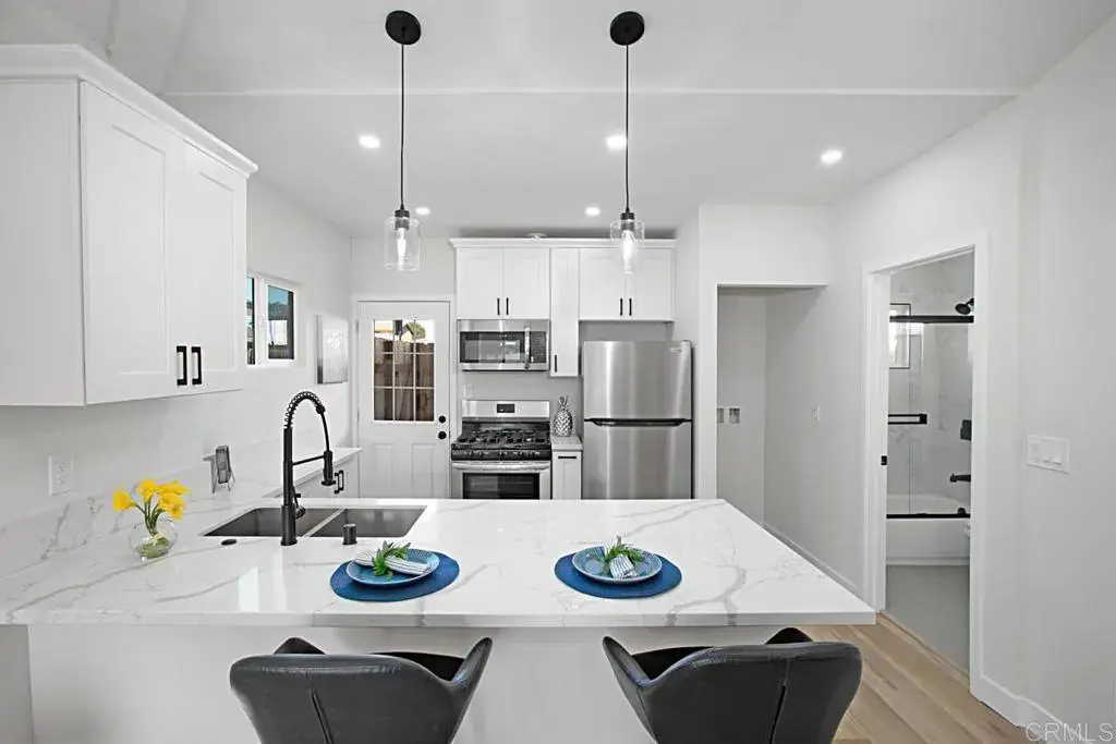 Live the coastal lifestyle and generate rental income with this beautifully updated gem in Imperial Beach! This versatile property features two separate units—a spacious 2 bed/2 bath main home and a permitted studio ADU with its own private entrance, currently generating $1,975/month in rental income. The main home offers soaring ceilings, abundant natural light, and an open layout that flows seamlessly to a private patio—perfect for entertaining or unwinding. Thoughtfully upgraded throughout, the property is truly turn-key with renovated kitchens and bathrooms, updated flooring, in-unit laundry, new windows, and modern lighting. The ADU provides excellent flexibility for supplemental income, guests, or extended family living. With off-street parking, convenient freeway access, and just minutes from the beach and local shops, this is an exceptional opportunity to enjoy Southern California living while building long-term real estate value.