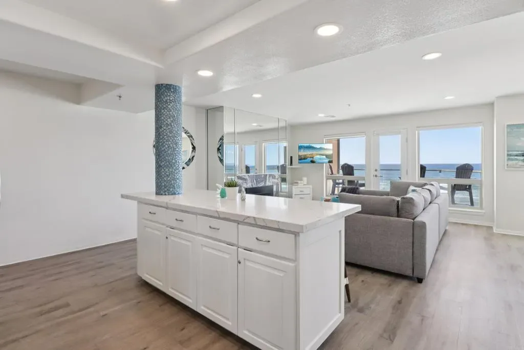 You won’t want to miss the opportunity to own a piece of oceanfront paradise with views that stretch for miles. Welcome to IB’s coastal living at its finest – The Beach Club. This beautifully updated beachfront condo at 714 Seacoast Drive unit 208 offers a rare opportunity to own a legal short-term rental in one of Southern California’s most charming beach communities. Perfectly positioned along the sand, this residence captures breathtaking, unobstructed westerly views of the Pacific Ocean, stretching from the iconic IB Pier north toward Coronado and the downtown San Diego skyline. From morning coffee to sunset evenings, the ever-changing ocean views create an incredible backdrop for everyday living or vacation stays. Inside, the home has been tastefully upgraded with modern finishes that elevate both comfort and style. The remodeled kitchen features refinished cabinetry, sleek countertops, and contemporary fixtures, creating a clean and functional space that flows seamlessly into the main living area—perfect for entertaining or relaxing after a day at the beach. Both bathrooms have been thoughtfully renovated, showcasing stylish tile work, updated vanities, and modern fixtures that give the home a fresh, spa-like feel. Large windows invite in natural light and frame the spectacular ocean scenery. The private balcony provides a front-row seat to San Diego’s famous sunsets, rolling surf, and passing dolphins. Located just steps from the sand, restaurants, cafés, and the vibrant Seacoast Drive boardwalk, this condo offers the perfect blend of relaxed beach living and strong rental appeal. Whether you’re looking for a full-time residence, a vacation getaway, or a high-demand income property, this home offers exceptional flexibility and investment potential.